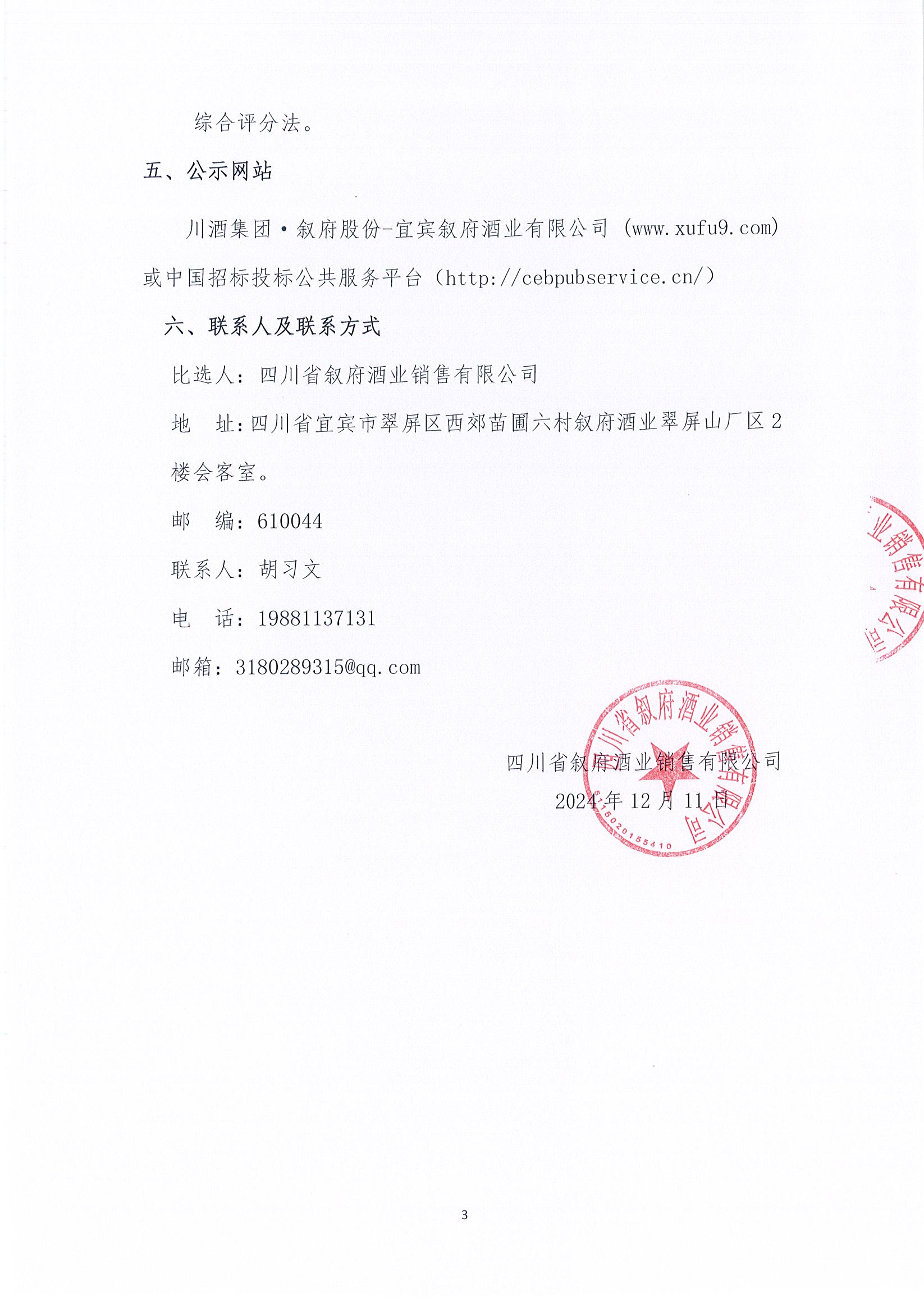 四川省敘府酒業(yè)銷(xiāo)售有限公司2024年第四季度敘府品牌廣告投放采購項目單一來(lái)源公示公告