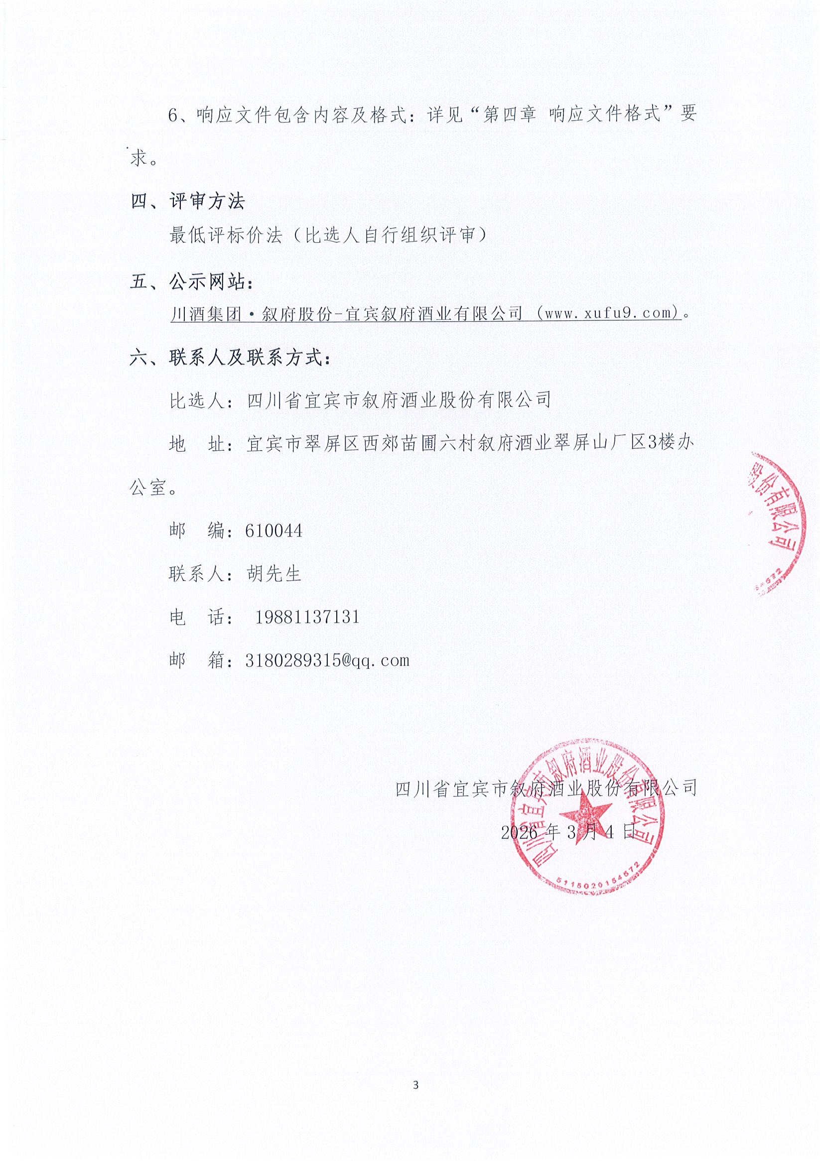 第二次四川省敘府酒業(yè)銷售有限公司2026敘府酒業(yè)經銷商價值共創(chuàng)大會搭建及服務采購項目競爭談判結果公示