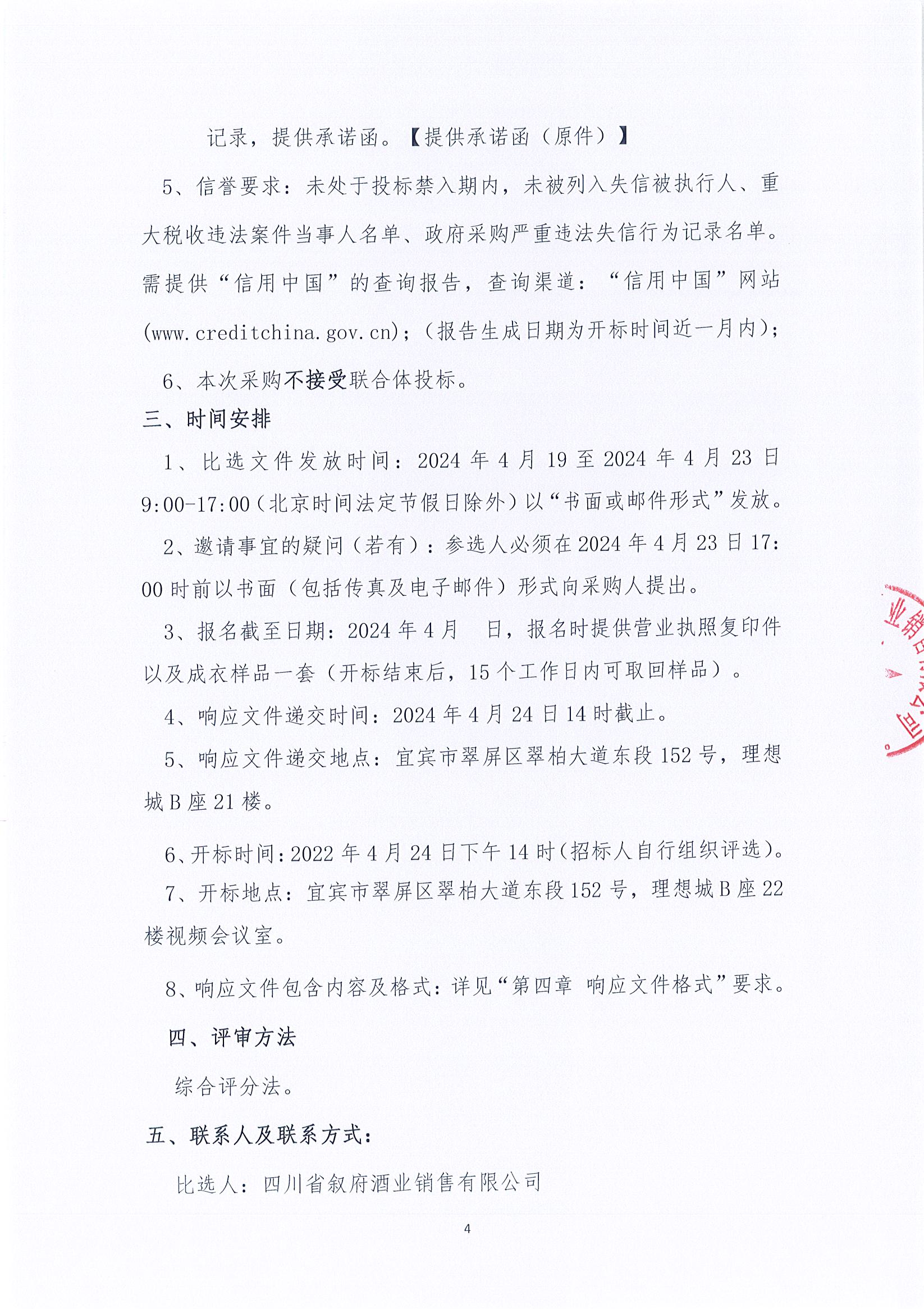 (第二次)四川省敘府酒業(yè)銷(xiāo)售有限公司2024年自營(yíng)中高端價(jià)位產(chǎn)品設計服務(wù)采購項目招標公示公告