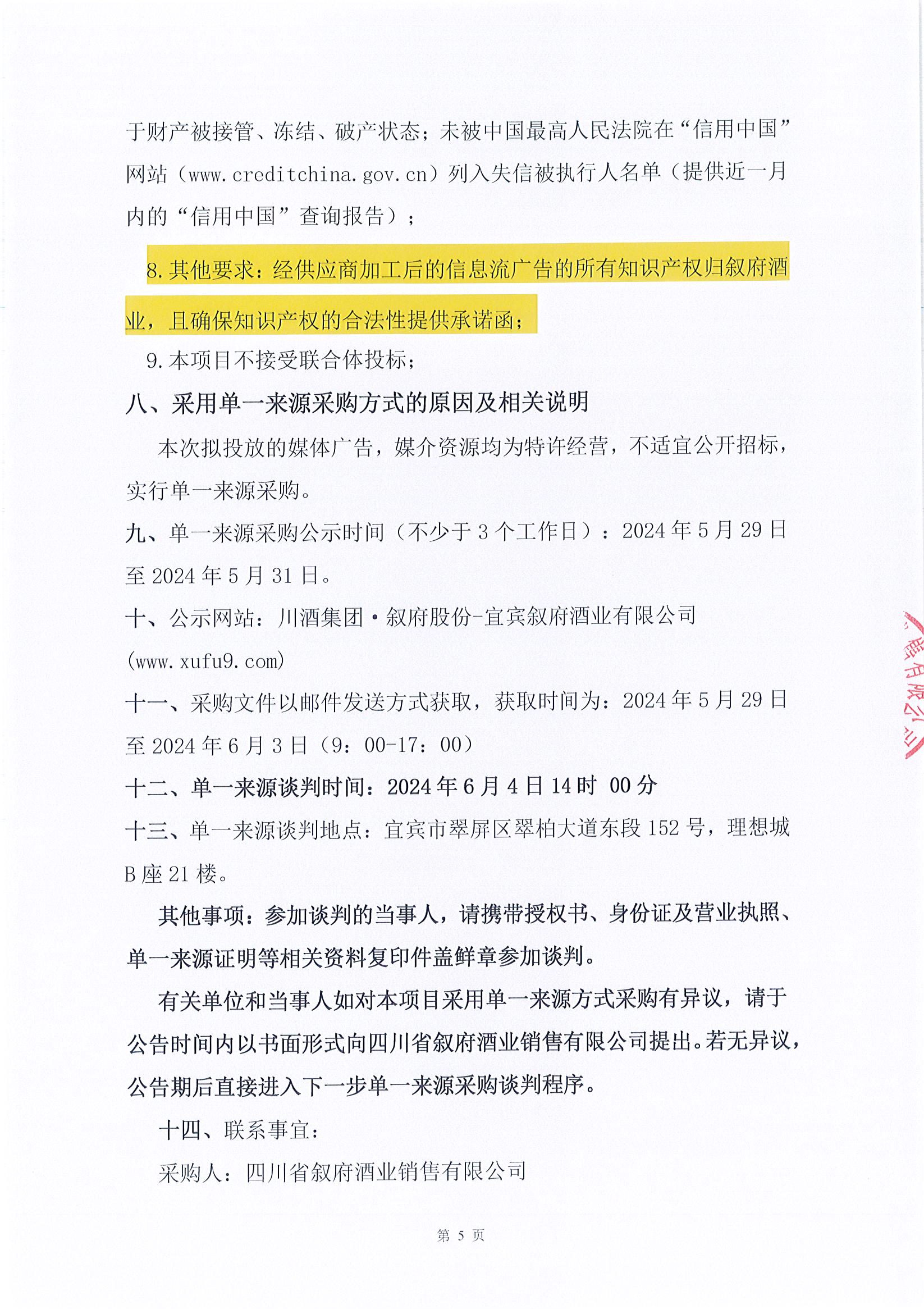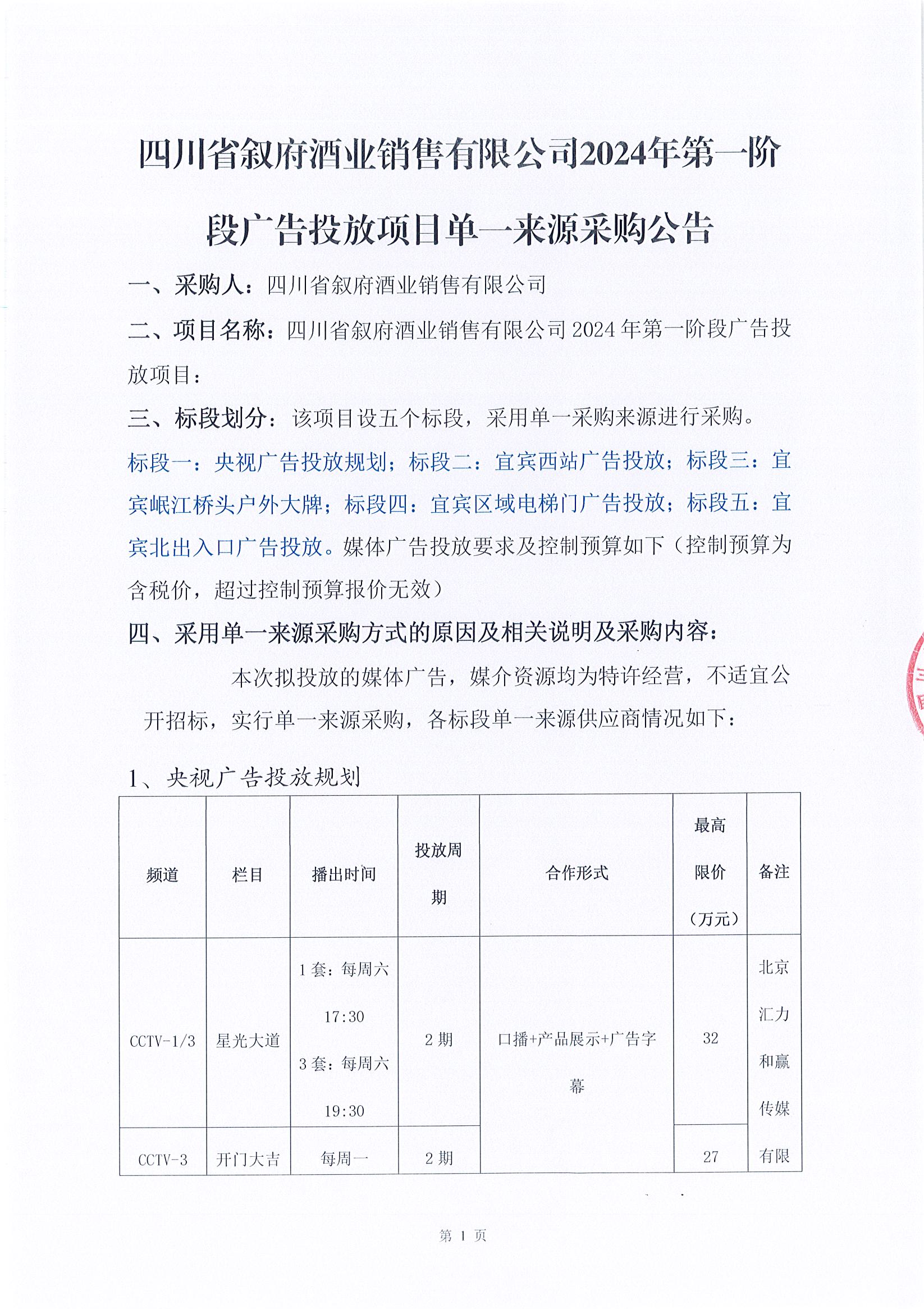 四川省敘府酒業(yè)銷(xiāo)售有限公司高速跨線(xiàn)橋/宜賓區域道閘廣告投放采購項目公開(kāi)比選公示公告