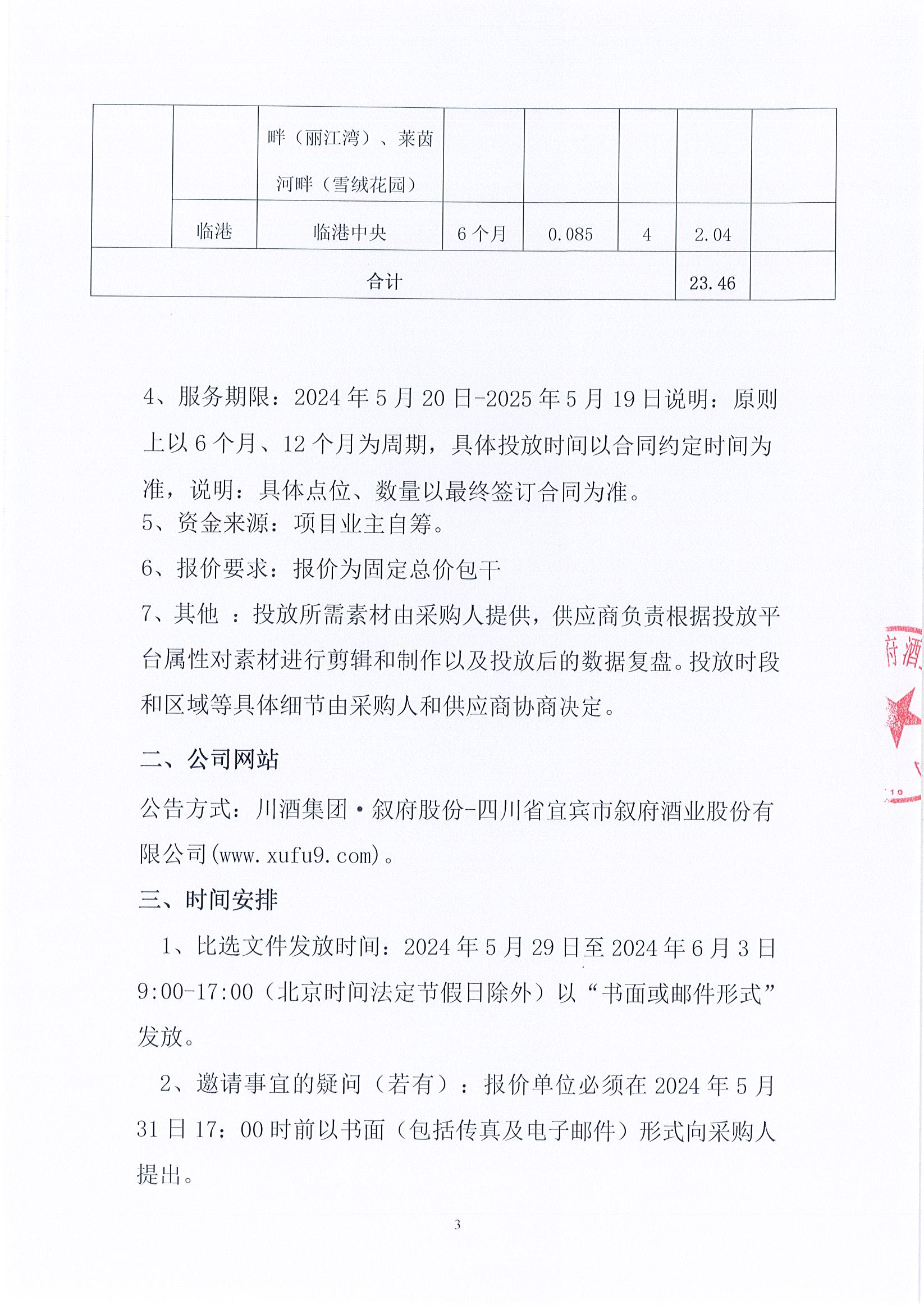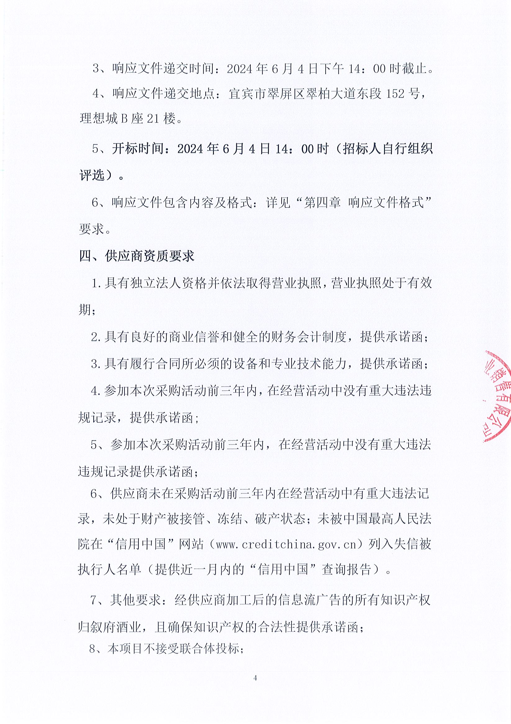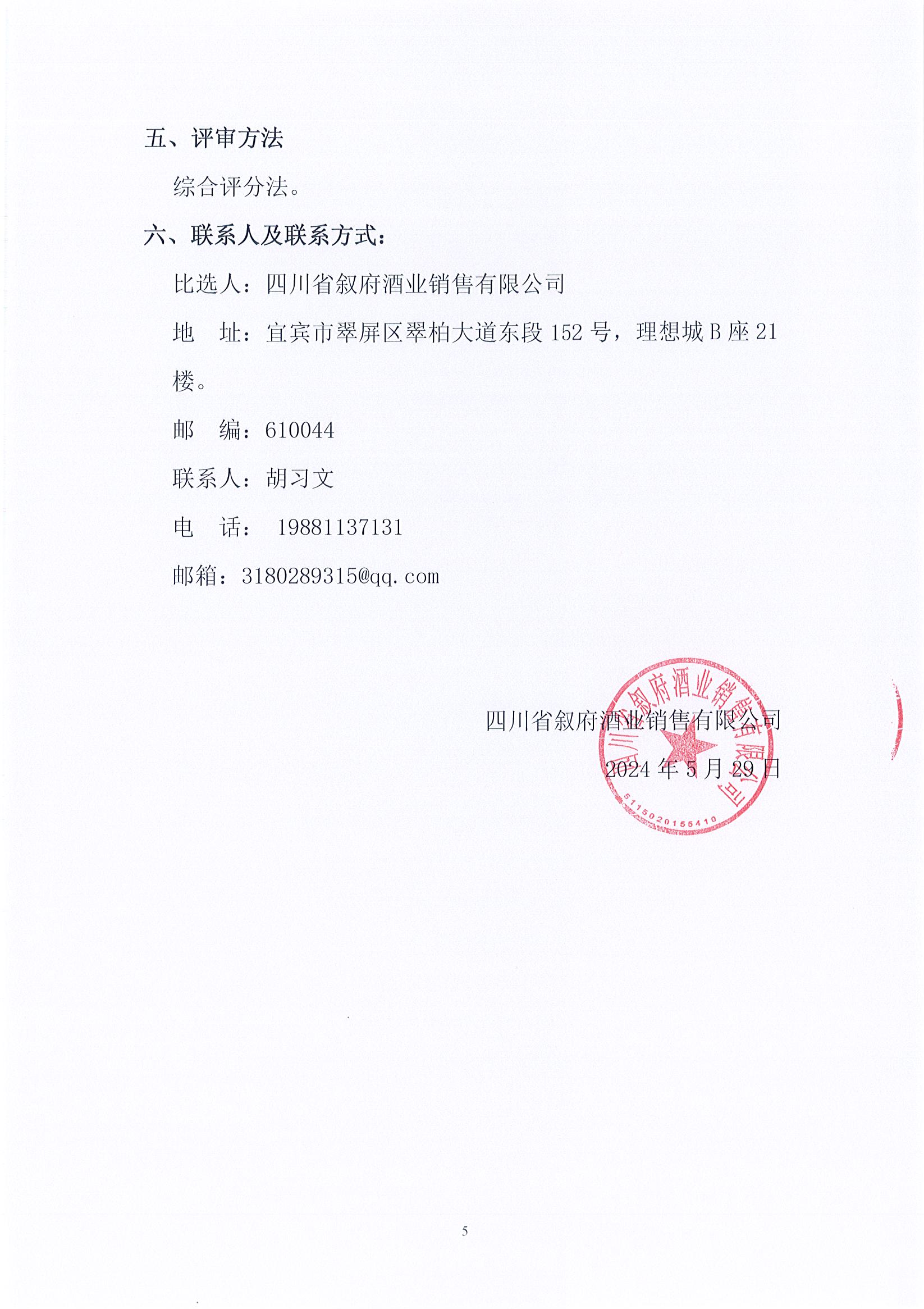 四川省敘府酒業(yè)銷(xiāo)售有限公司高速跨線(xiàn)橋/宜賓區域道閘廣告投放采購項目公開(kāi)比選公示公告