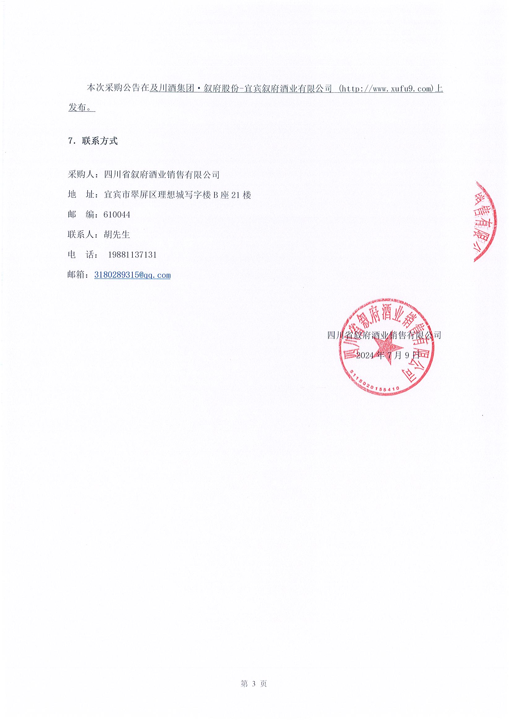 四川省敘府酒業(yè)銷(xiāo)售有限公司2024年度名酒研究所宣發(fā)資源單一來(lái)源采購項目公示公告