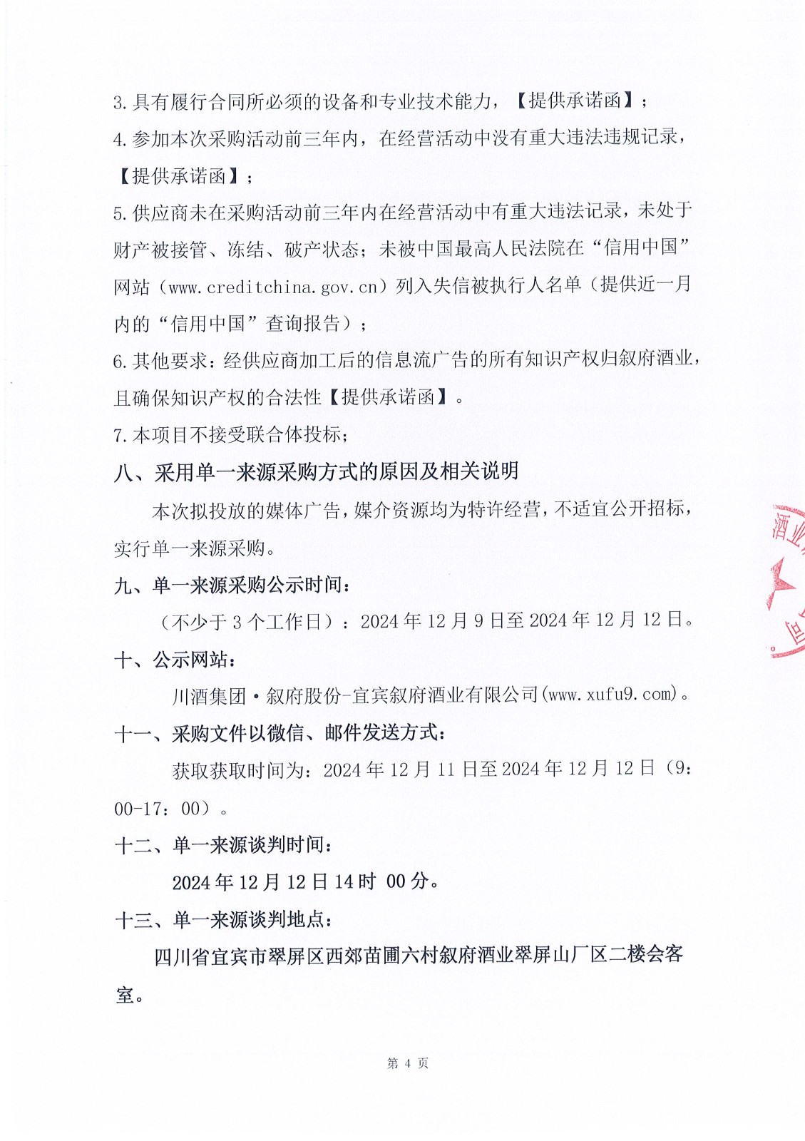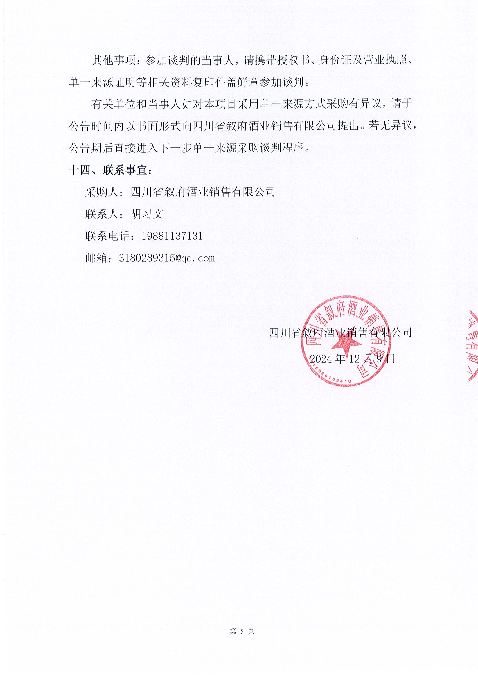 四川省宜賓市敘府酒業(yè)股份有限公司李莊廠(chǎng)區2024年12月-2025年12月丟糟外包出售競爭性談判項目結果公示
