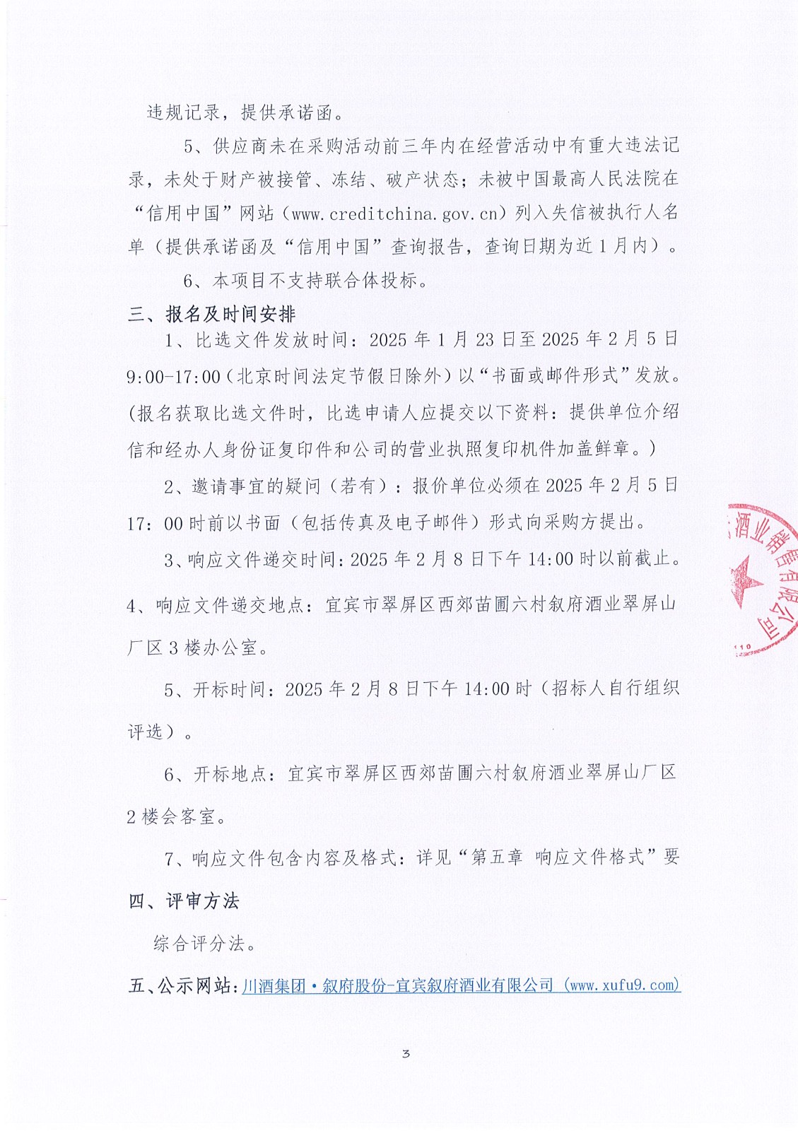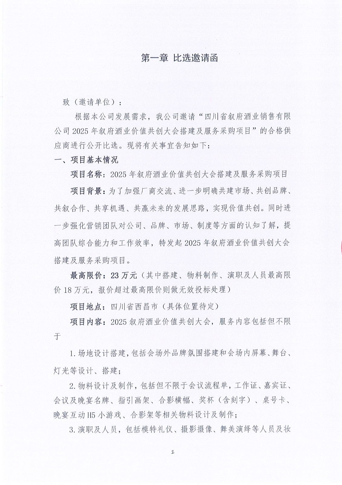四川省敘府酒業(yè)銷(xiāo)售有限公司2025年敘府酒業(yè)價(jià)值共創(chuàng )大會(huì )搭建服務(wù)采購項目比選結果公示公告