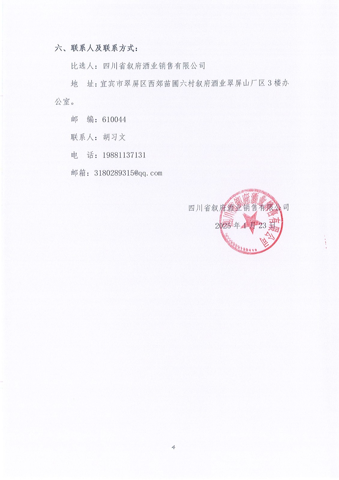 四川省敘府酒業(yè)銷(xiāo)售有限公司敘府純糧、陳釀及蛇年生肖紀念創(chuàng )作與拍攝采購項目比選結果公示公告