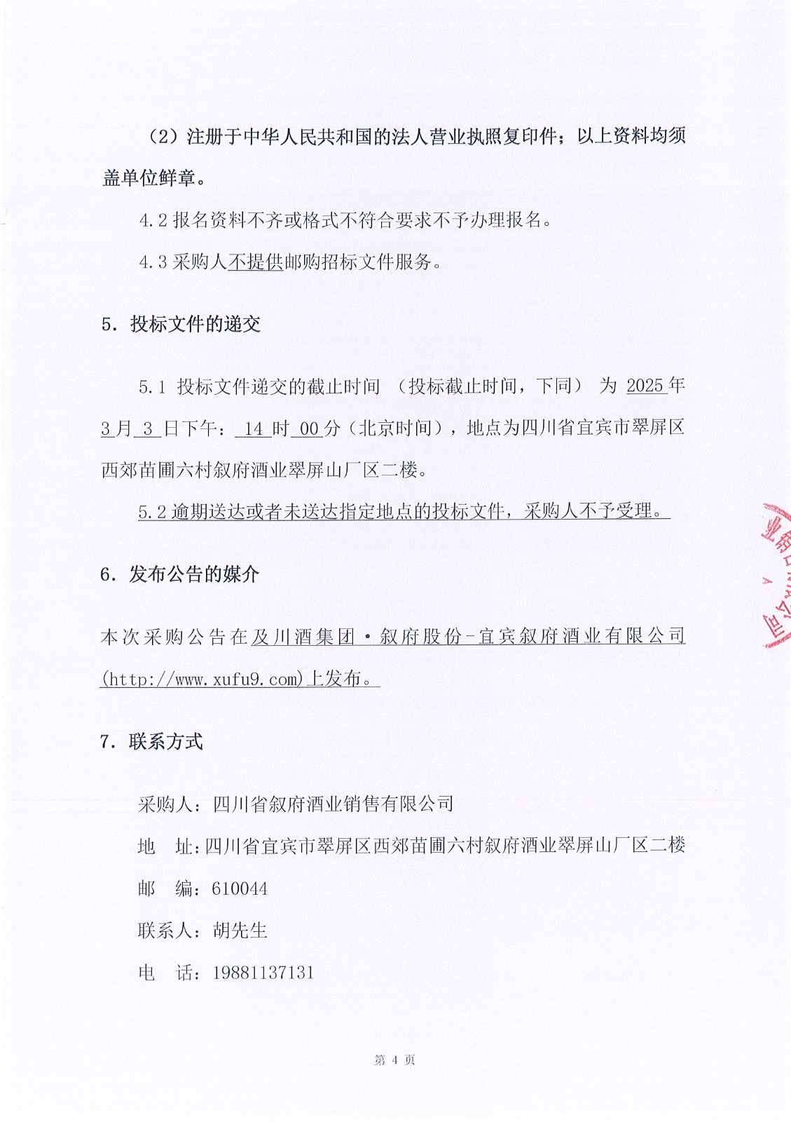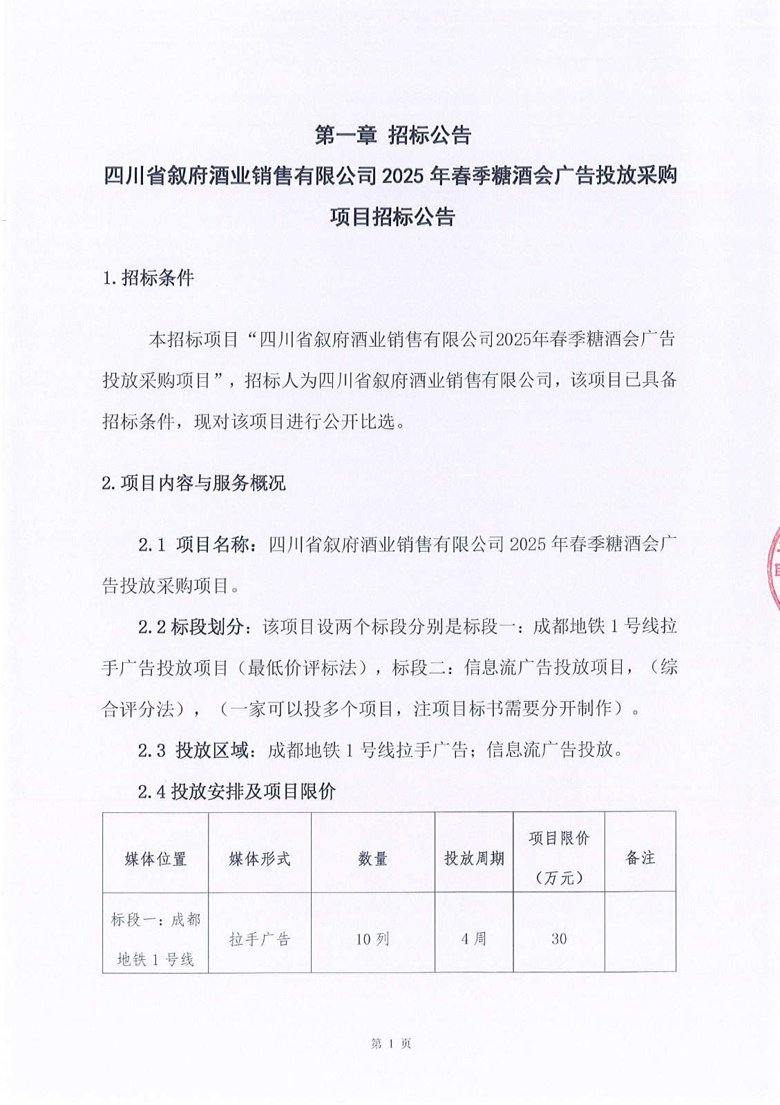 四川省敘府酒業(yè)銷(xiāo)售有限公司2025年春季糖酒會(huì )廣告投放采購項目招標公告