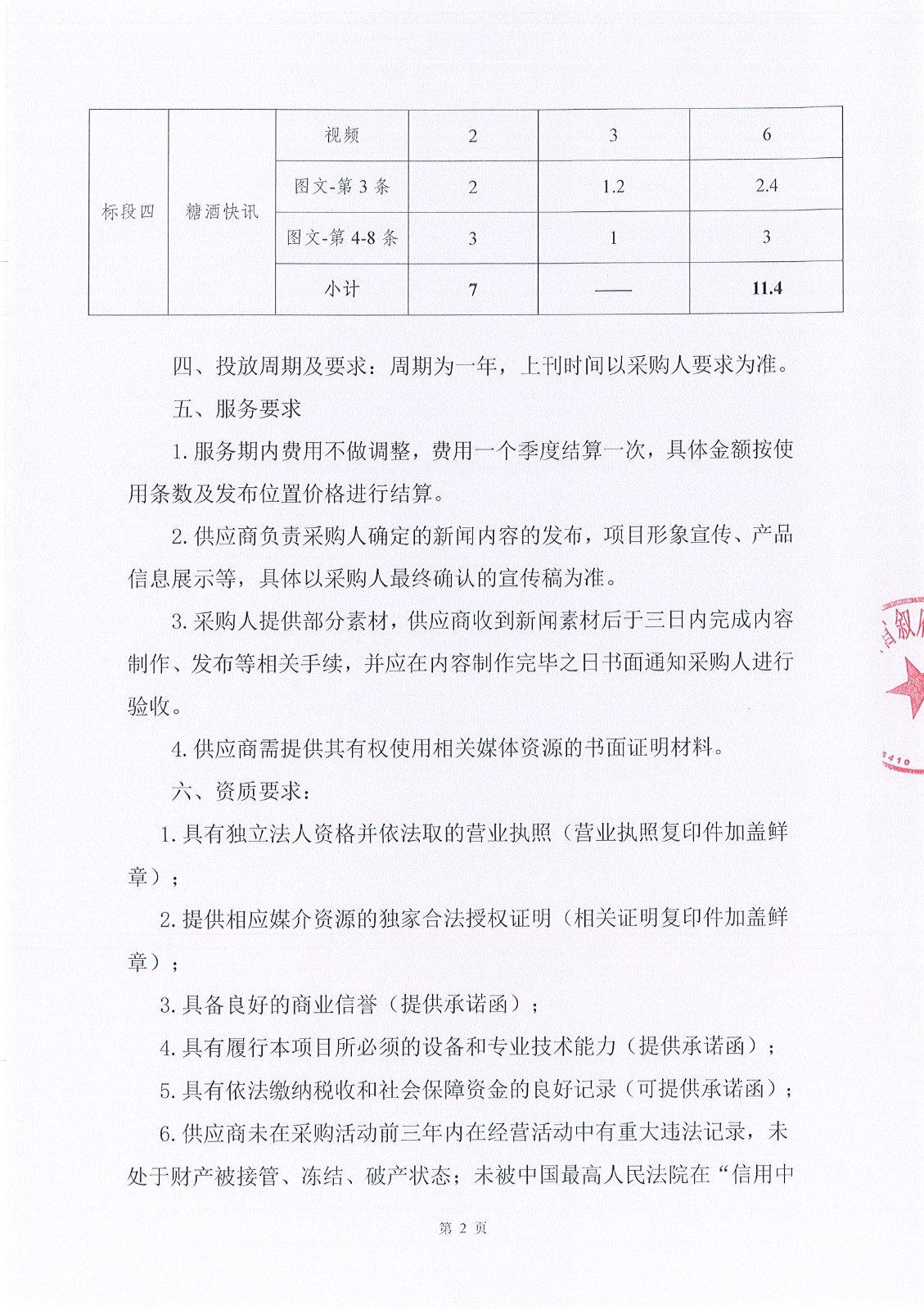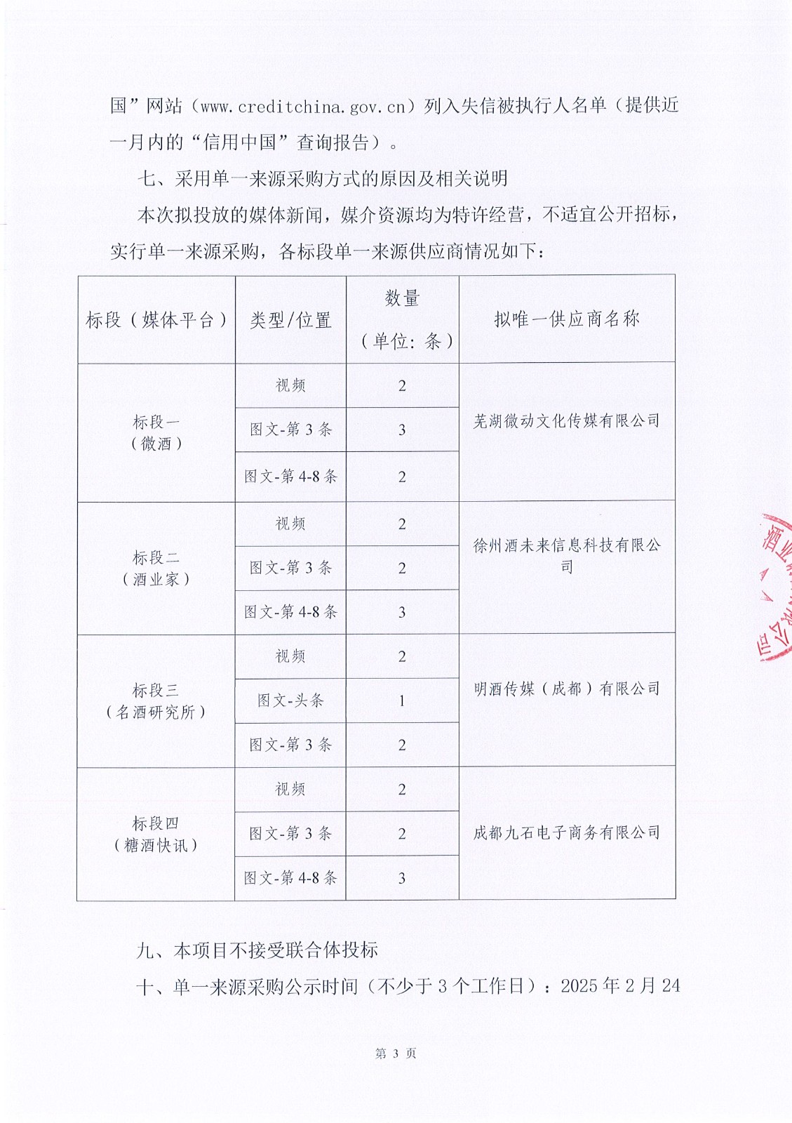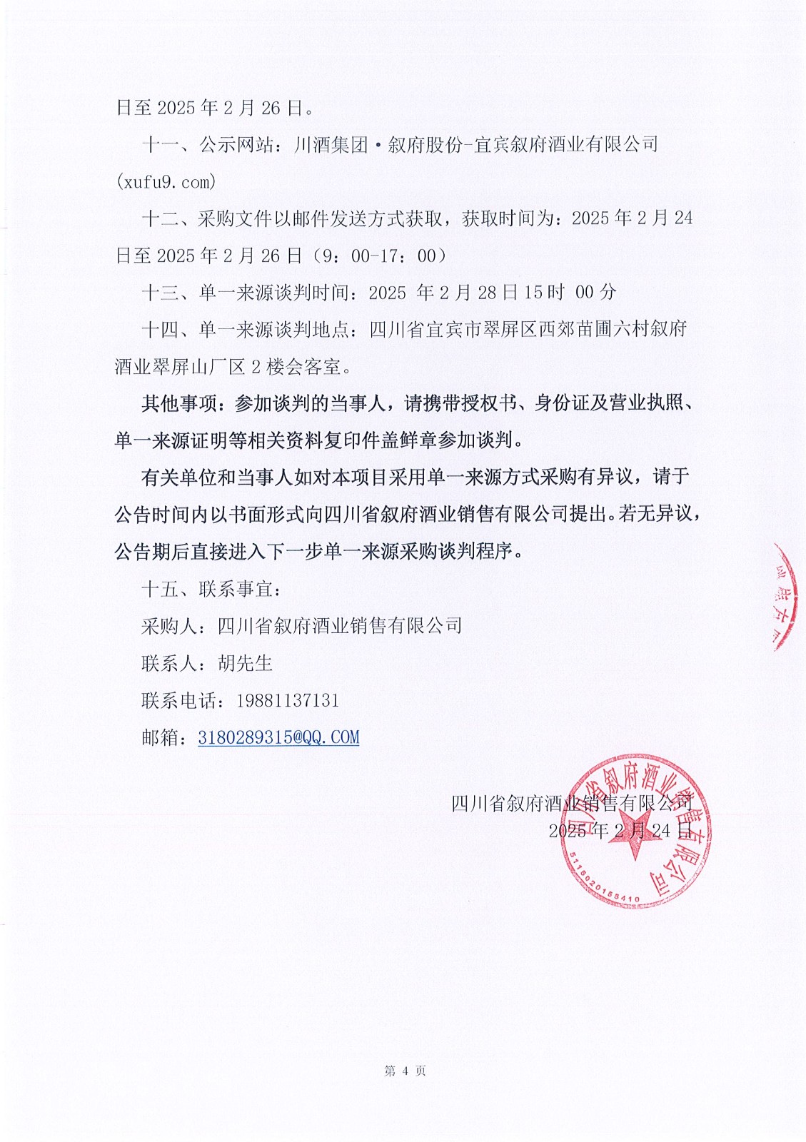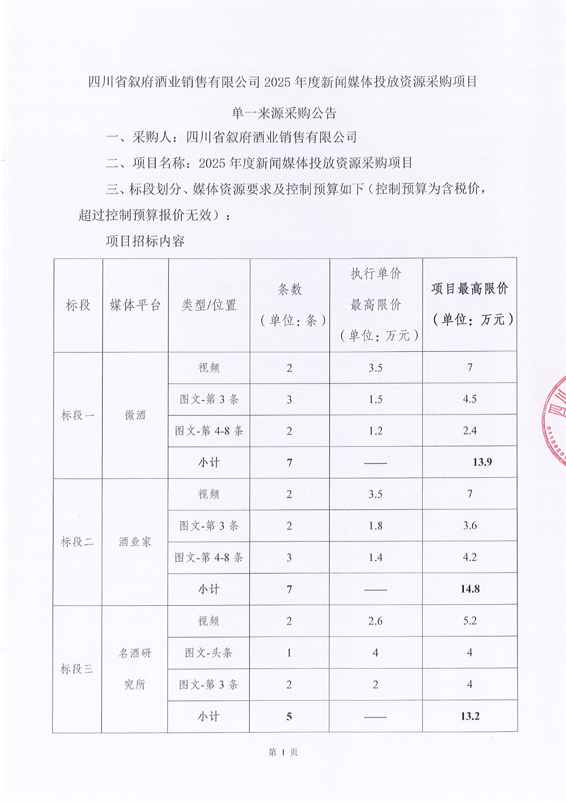 四川省敘府酒業(yè)銷(xiāo)售有限公司2025年度新聞媒體投放資源采購項目 單一來(lái)源采購公告