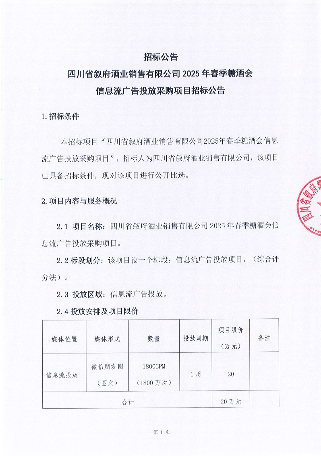 第二次四川省敘府酒業(yè)銷(xiāo)售有限公司2025年度敘府品牌設計服務(wù)采購項目招標公告