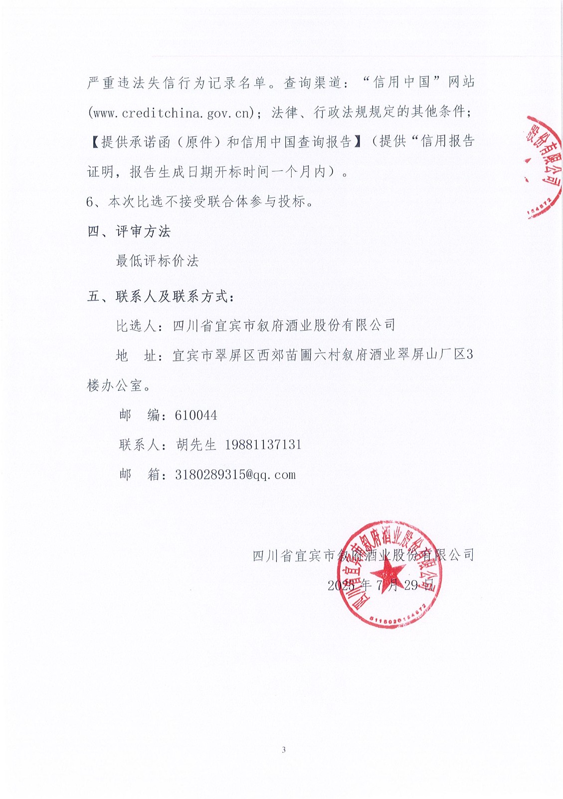 四川省敘府酒業(yè)銷(xiāo)售有限公司2025年宜賓西站大燈箱廣告投放采購項目單一來(lái)源采購結果公示公告