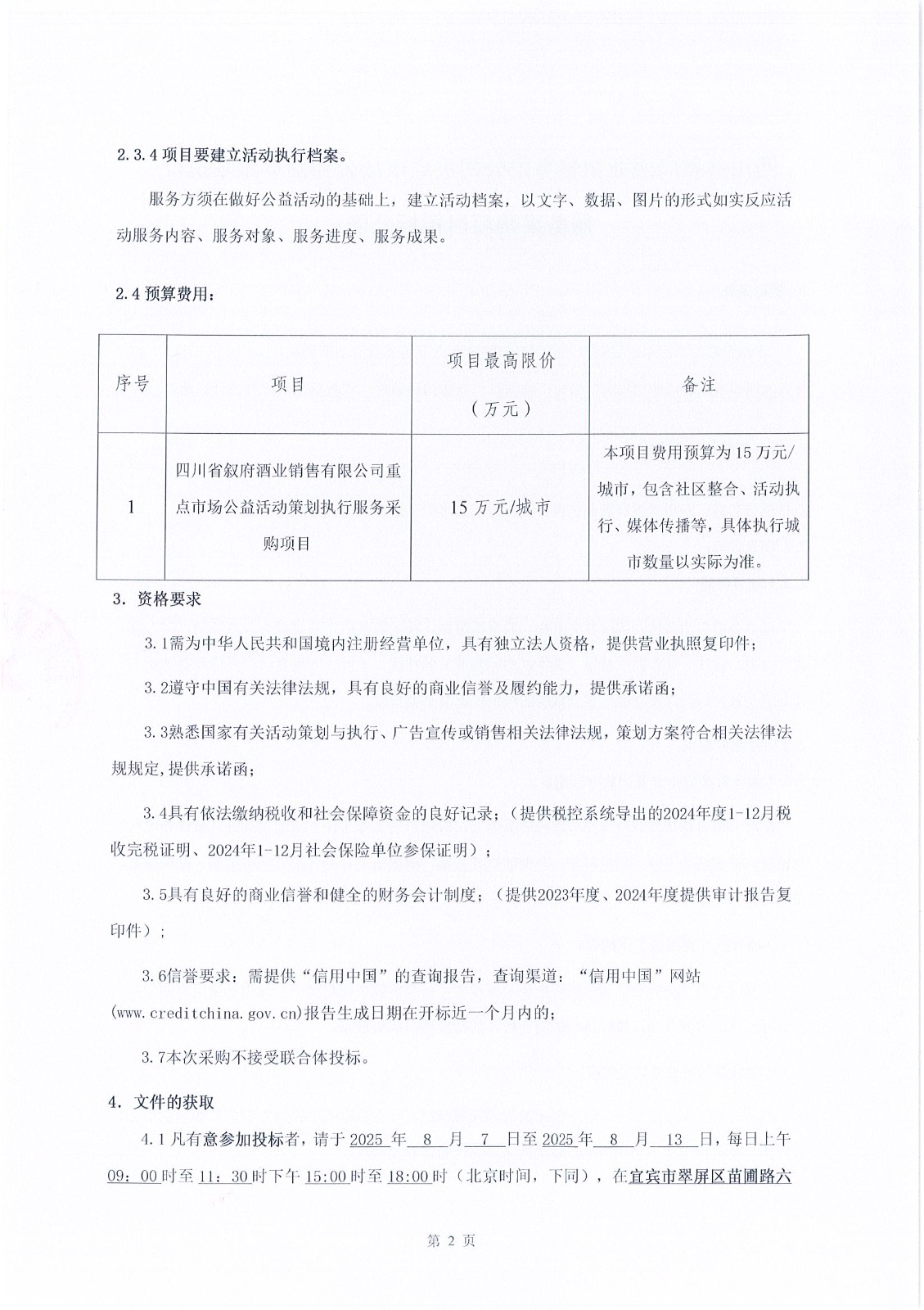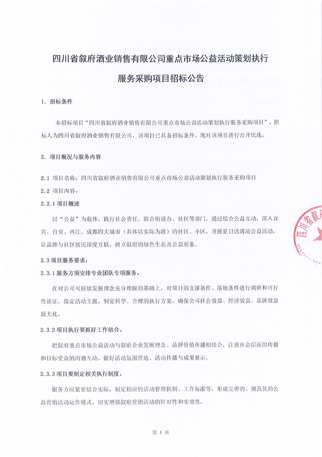 四川省敘府酒業(yè)銷(xiāo)售有限公司重點(diǎn)市場(chǎng)公益活動(dòng)策劃執行服務(wù)采購項目招標公告