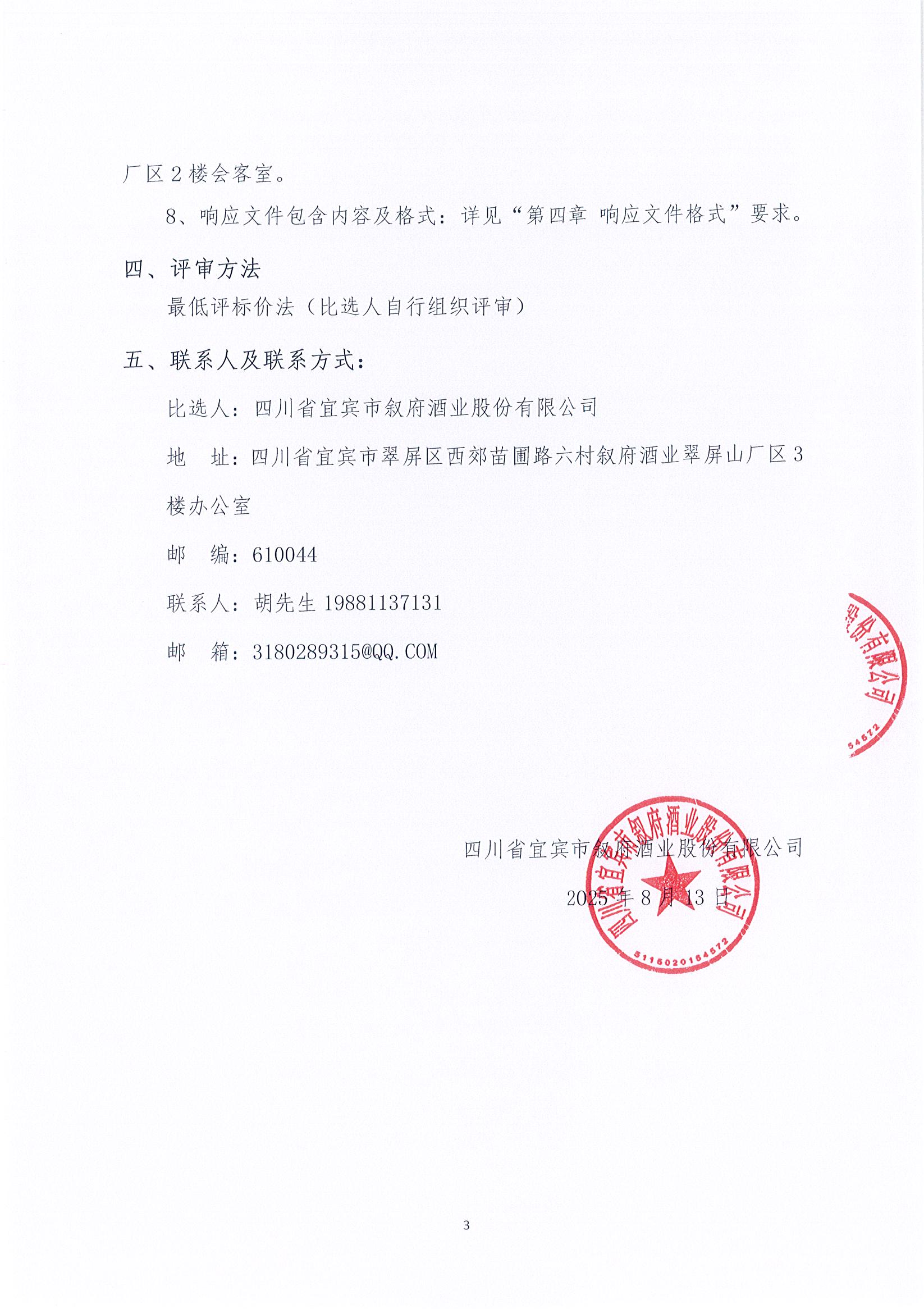 四川省宜賓市敘府酒業(yè)股份有限公司翠屏山廠(chǎng)區包裝車(chē)間、李莊廠(chǎng)區包裝車(chē)間及糧庫廢棄物料外包處置項目