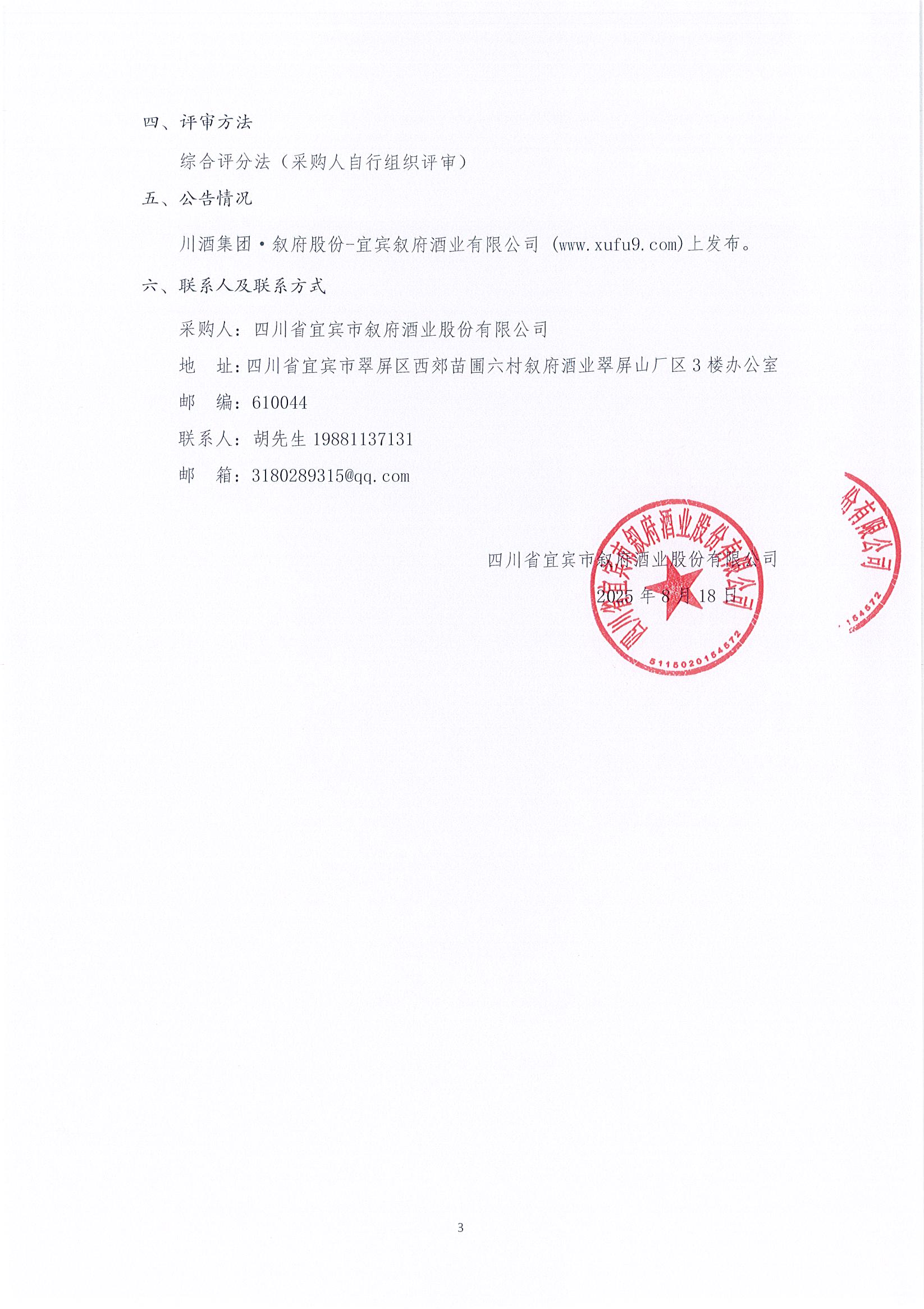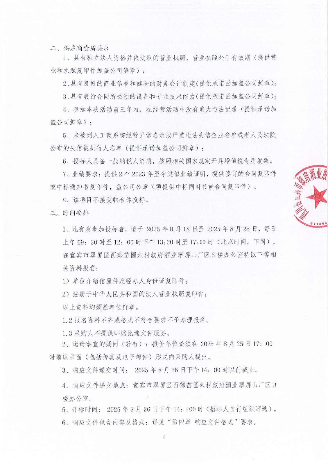 第二次四川省宜賓市敘府酒業(yè)股份有限公司2025年熱季檢修采購項目比選結果公示