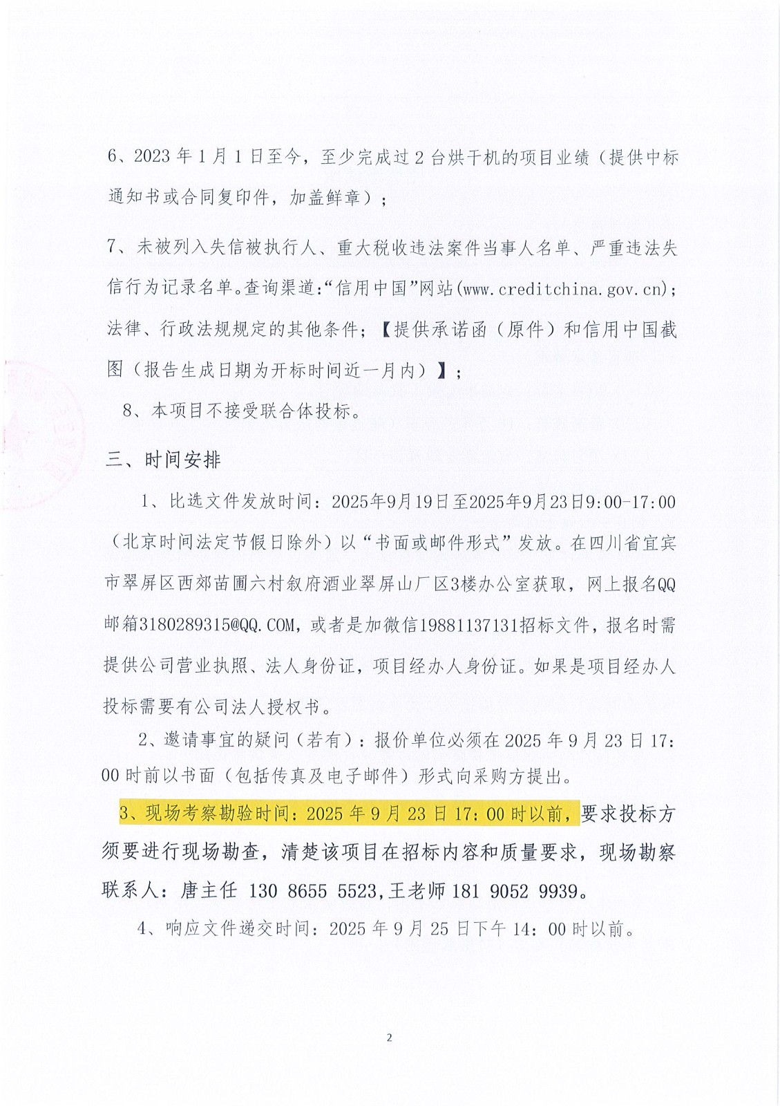 四川省宜賓市敘府酒業(yè)股份有限公司包裝中心烘干機采購項目流標公示公告