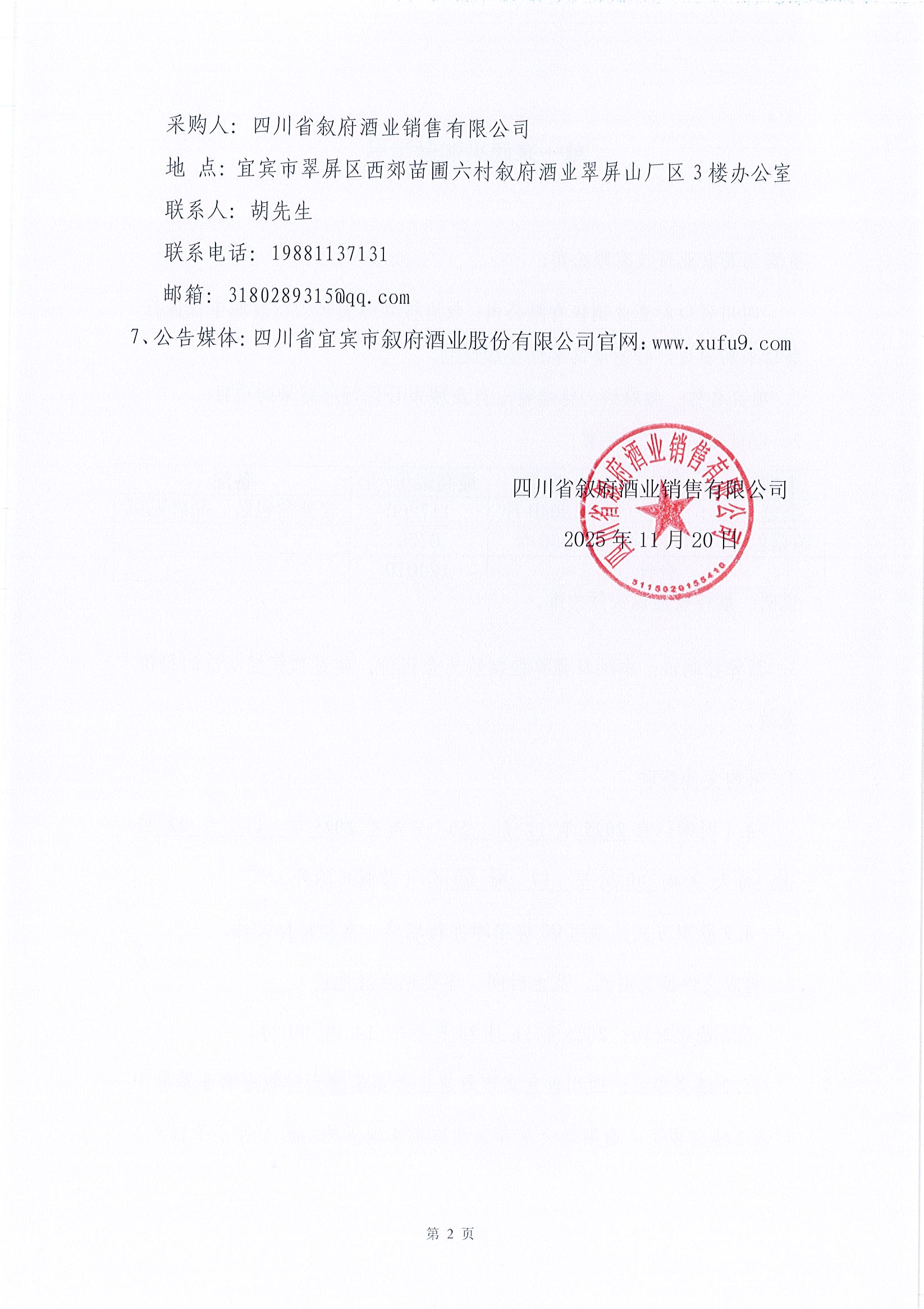四川省敘府酒業(yè)銷(xiāo)售有限公司敘府核心終端暖心行及城市社區行、蘑菇單一來(lái)源采購項目中標結果公示公告