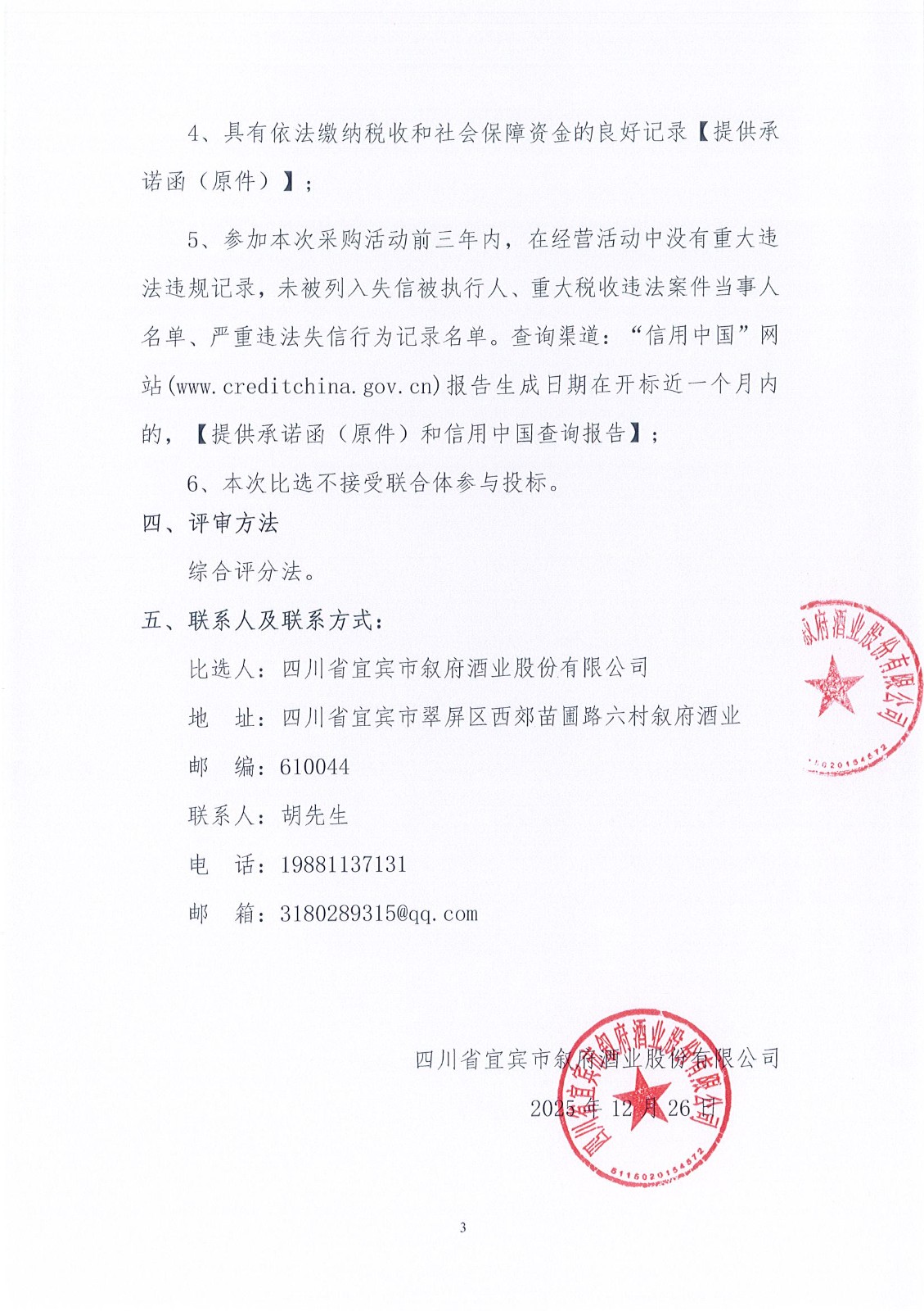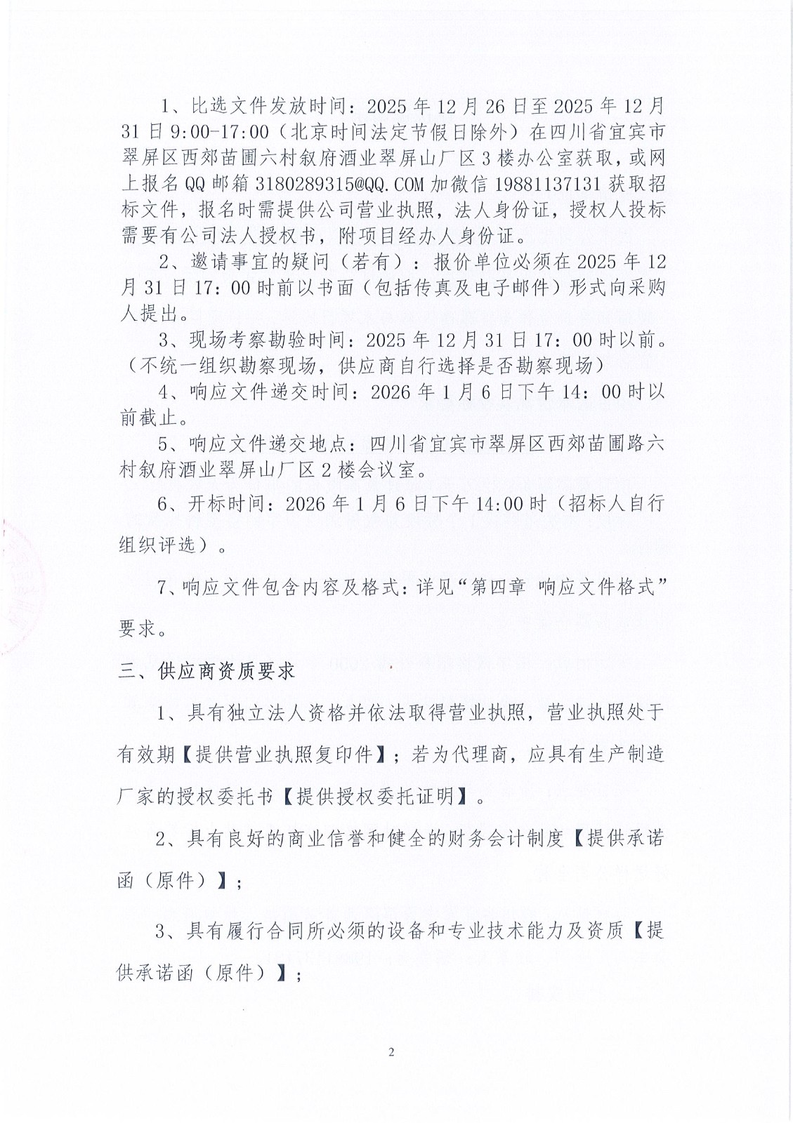 四川省宜賓市敘府酒業(yè)股份有限公司電動四輪車采購項(xiàng)目比選招標(biāo)公告