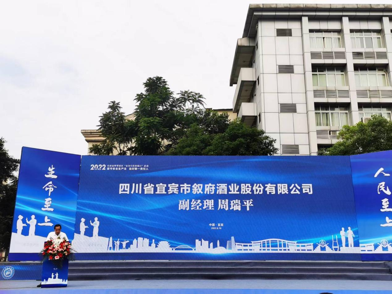 活動(dòng)現場(chǎng),宜賓市副市長(cháng)薛慶致辭并宣布活動(dòng)啟動(dòng),敘府酒業(yè)副總經(jīng)理周瑞平代表在場(chǎng)企業(yè)作了主題為《當好第一責任人 落實(shí)企業(yè)主體責任》的經(jīng)驗交流。作為翠屏區重點(diǎn)酒類(lèi)生產(chǎn)企業(yè),敘府酒業(yè)數十年如一日堅持將安全生產(chǎn)作為企業(yè)經(jīng)營(yíng)管理的重中之重,堅決踐行習近平總書(shū)記關(guān)于安全生產(chǎn)的重要論述,堅持人民至上、生命至上的理念,狠抓安全生產(chǎn)。通過(guò)“一抓責任落實(shí)、二抓制度健全、三抓培訓教育、四抓保障投入”的有效舉措,積極履行安全主體責任,建立健全安全管控機制,力求做到防患于未然,切實(shí)保障員工生命健康和企業(yè)生產(chǎn)安全。