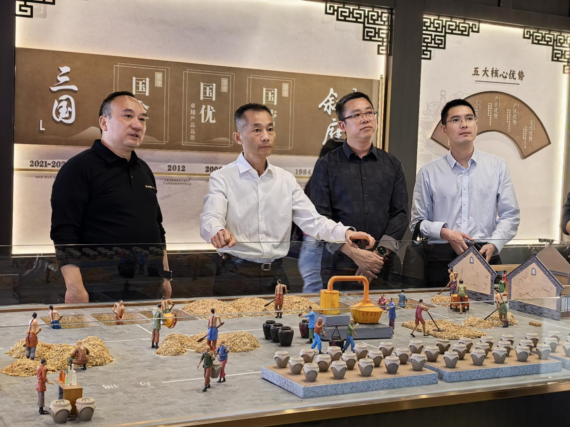 2025年4月22日下午,四川酒業(yè)茶業(yè)投資集團有限公司(簡(jiǎn)稱(chēng)“四川酒茶集團公司”)黨委書(shū)記、董事長(cháng)康俊率隊到訪(fǎng)川酒集團敘府酒業(yè)翠屏山基地參觀(guān)交流,川酒集團敘府酒業(yè)黨委副書(shū)記、總經(jīng)理胡剛等陪同。
