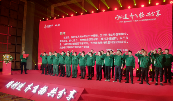 新的藍(lán)圖已然呈現(xiàn),戰(zhàn)鼓隨即擂響!“我宣誓,我將堅(jiān)決擁護(hù)公司方針戰(zhàn)略……為穩(wěn)步提升銷量而不懈努力,為終端市場(chǎng)持續(xù)盈利而團(tuán)結(jié)奮斗,為完成公司目標(biāo)任務(wù)而奮力搏擊!”臺(tái)上,敘府營(yíng)銷團(tuán)隊(duì)聲聲誓詞直沖云霄;臺(tái)下,經(jīng)銷商掌聲雷動(dòng)。沖刺的號(hào)角已經(jīng)吹響,敘府軍團(tuán)已整裝待發(fā),他們將揚(yáng)起奮進(jìn)的風(fēng)帆,譜寫敘府新華章。