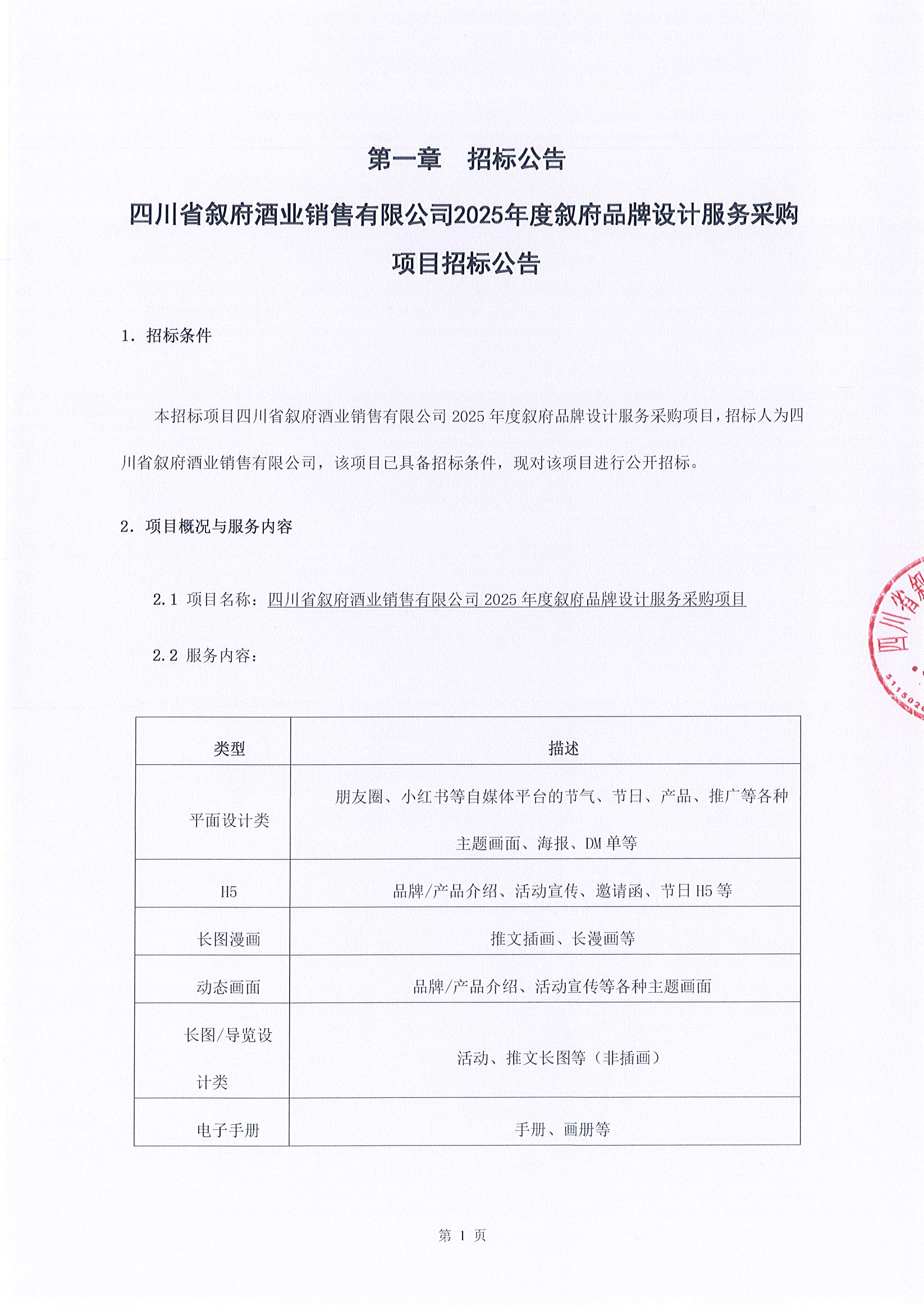 四川省敘府酒業(yè)銷(xiāo)售有限公司2025年度敘府品牌設計服務(wù)采購項目公開(kāi)比選公示公告