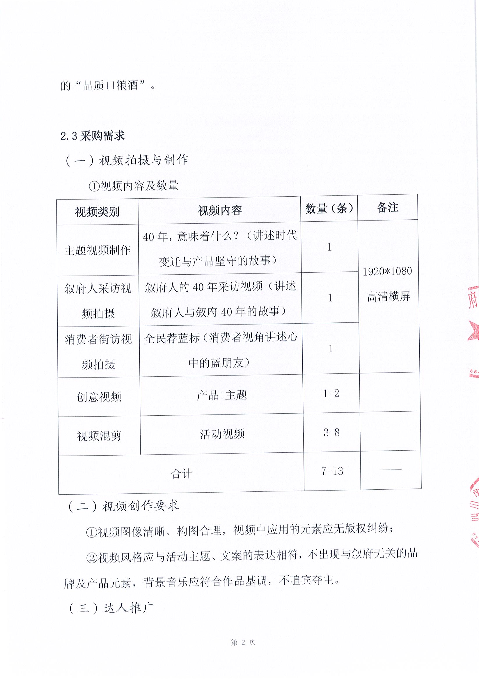 四川省敘府酒業(yè)銷(xiāo)售有限公司敘府大曲(藍標)產(chǎn)品TVC的創(chuàng )作與拍攝采購項目中標結果公示公告