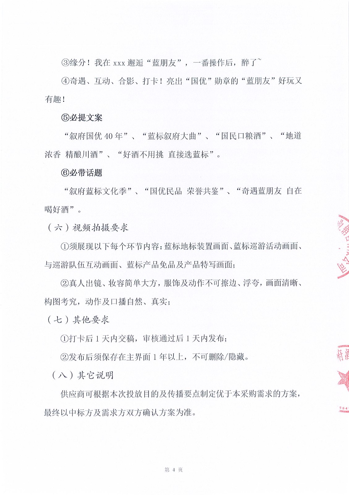 四川省敘府酒業(yè)銷(xiāo)售有限公司2024年敘府藍標文化季媒體投放采購項目比選結果公示公告