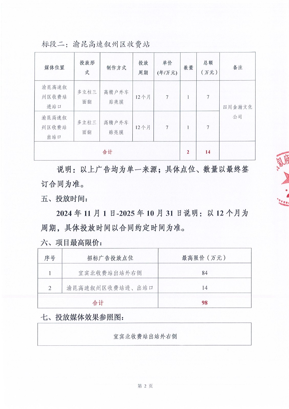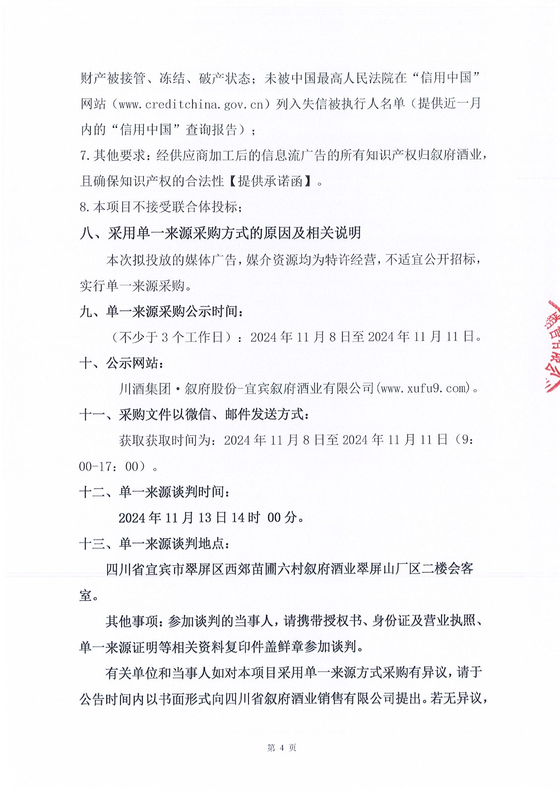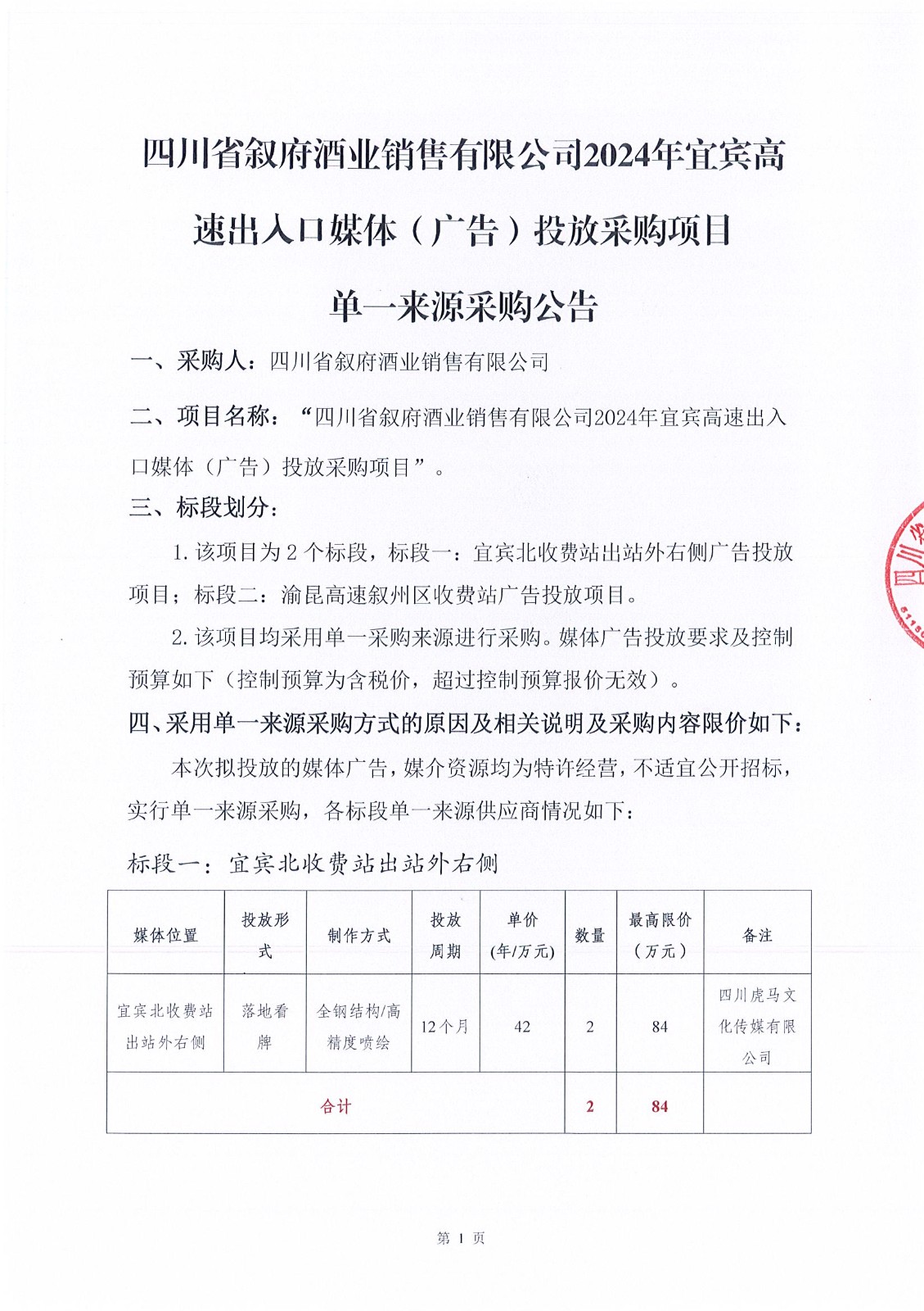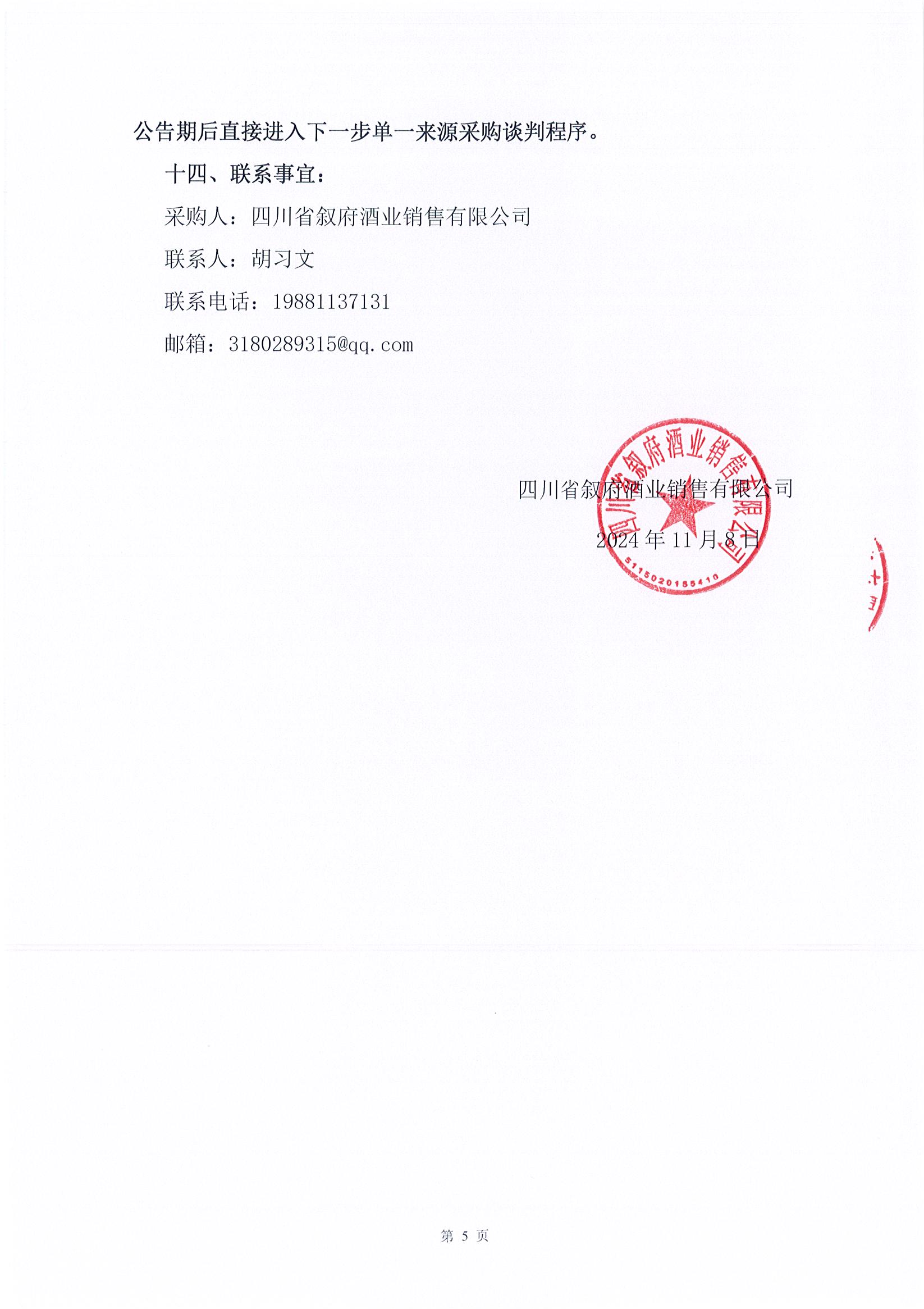 四川省敘府酒業(yè)銷(xiāo)售有限公司(藍標)敘府大曲形象廣告投放采購項目比選結果公示