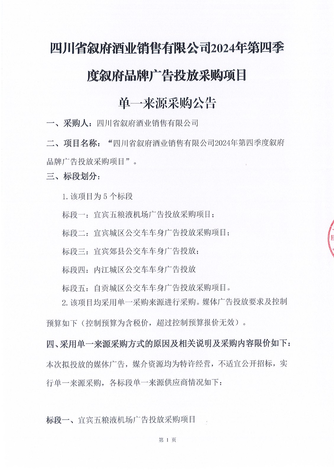 四川省敘府酒業(yè)銷(xiāo)售有限公司敘府大曲(藍標)產(chǎn)品TVC的創(chuàng )作與拍攝采購項目中標結果公示公告