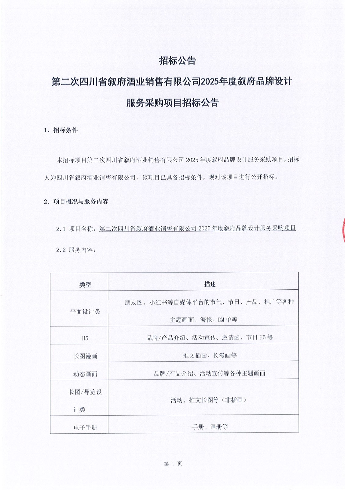 第二次四川省敘府酒業(yè)銷(xiāo)售有限公司2025年度敘府品牌設計服務(wù)采購項目招標公告
