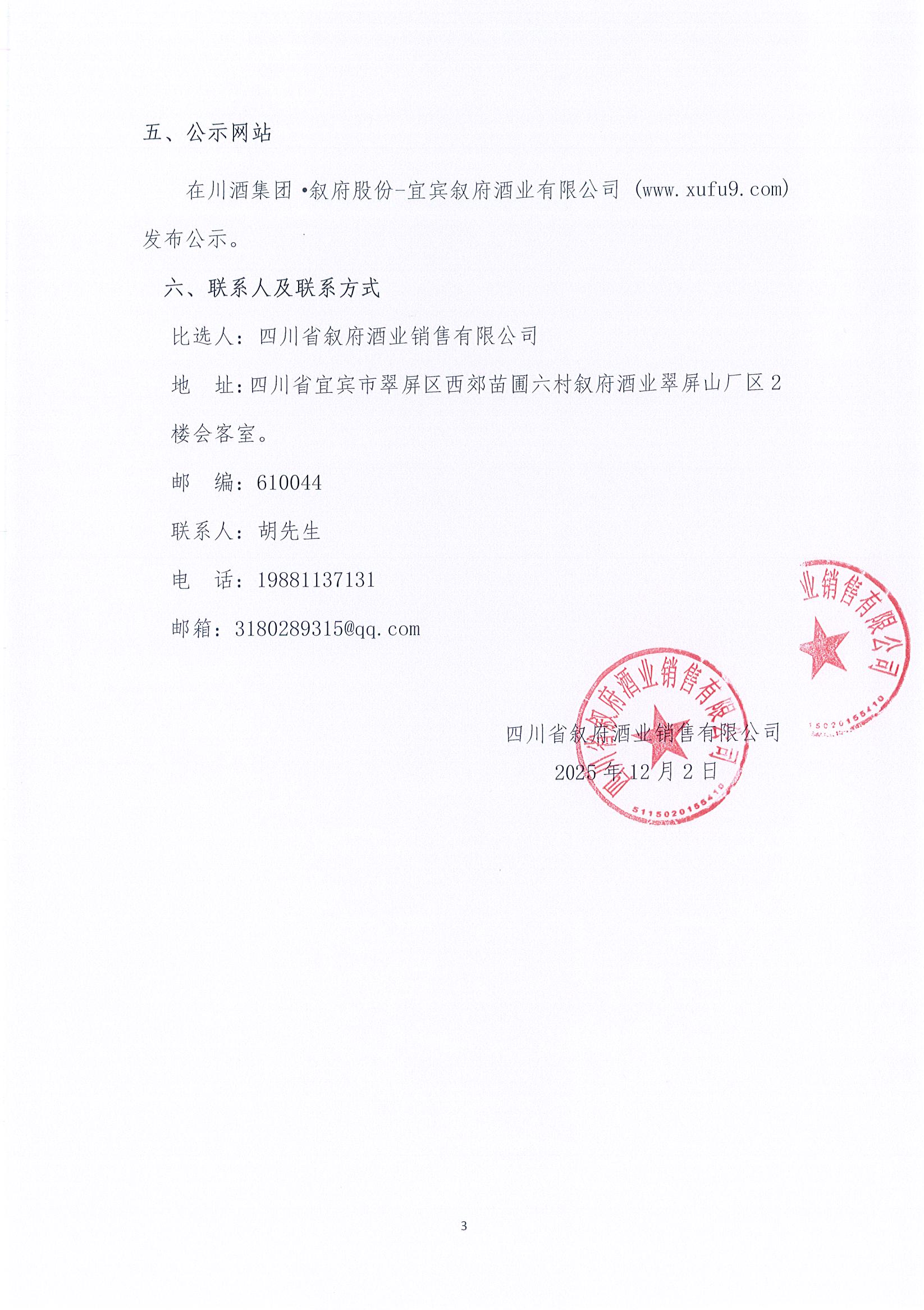 四川省敘府酒業(yè)銷(xiāo)售有限公司敘府大曲(藍標)產(chǎn)品TVC的創(chuàng )作與拍攝采購項目中標結果公示公告