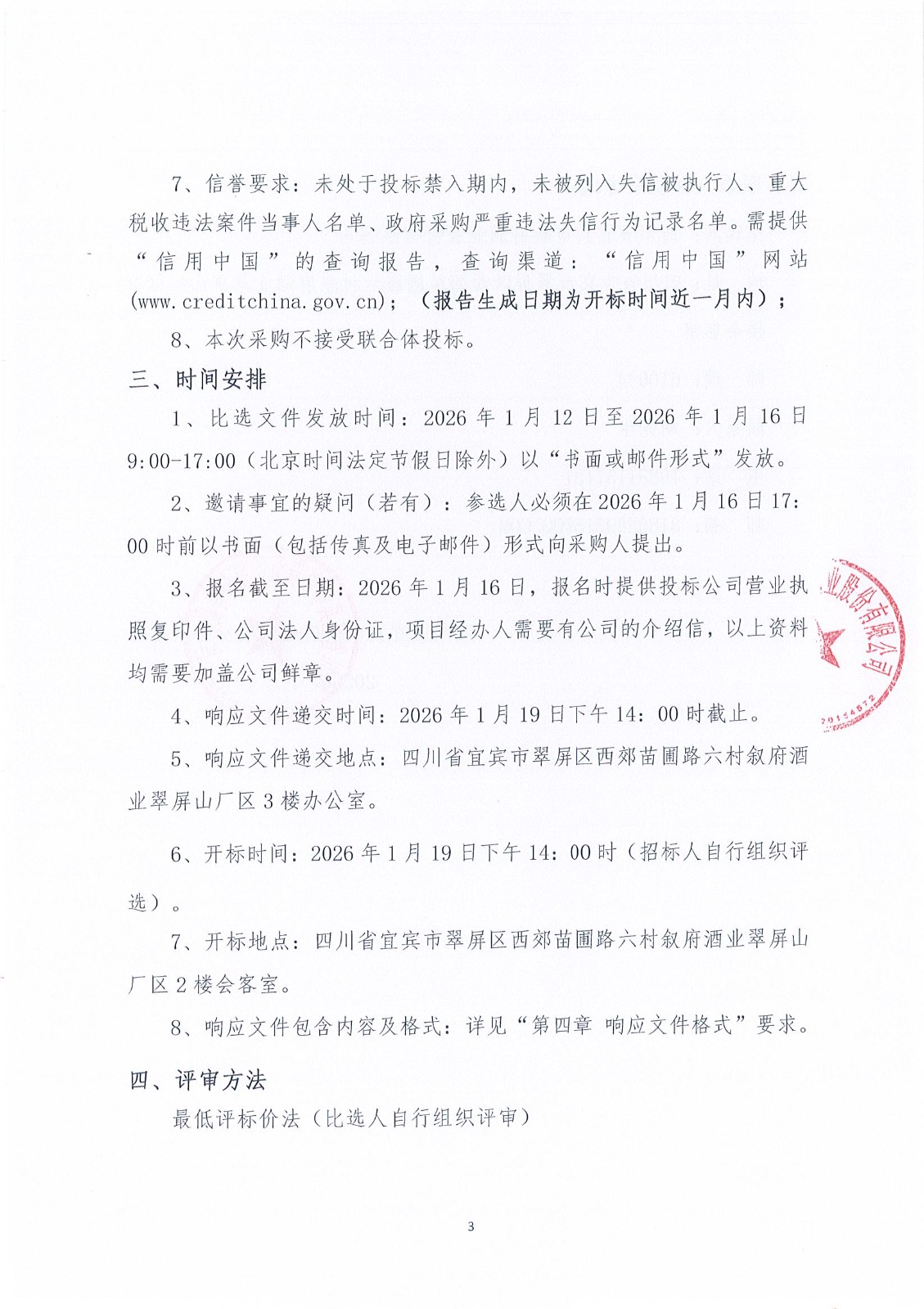 四川省宜賓市敘府酒業(yè)股份有限公司物流運(yùn)輸服務(wù)采購(gòu)項(xiàng)目比選招標(biāo)公示公告