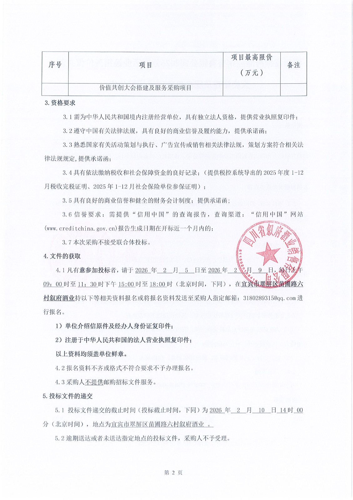四川省宜賓市敘府酒業(yè)股份有限公司電動四輪車競爭談判采購項目
