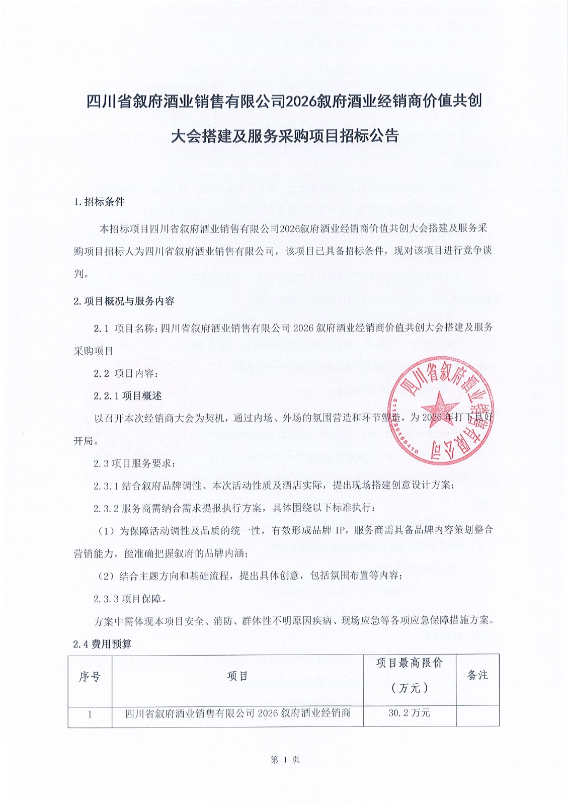 四川省宜賓市敘府酒業(yè)股份有限公司物流運輸服務(wù)采購項目比選結(jié)果公示公告